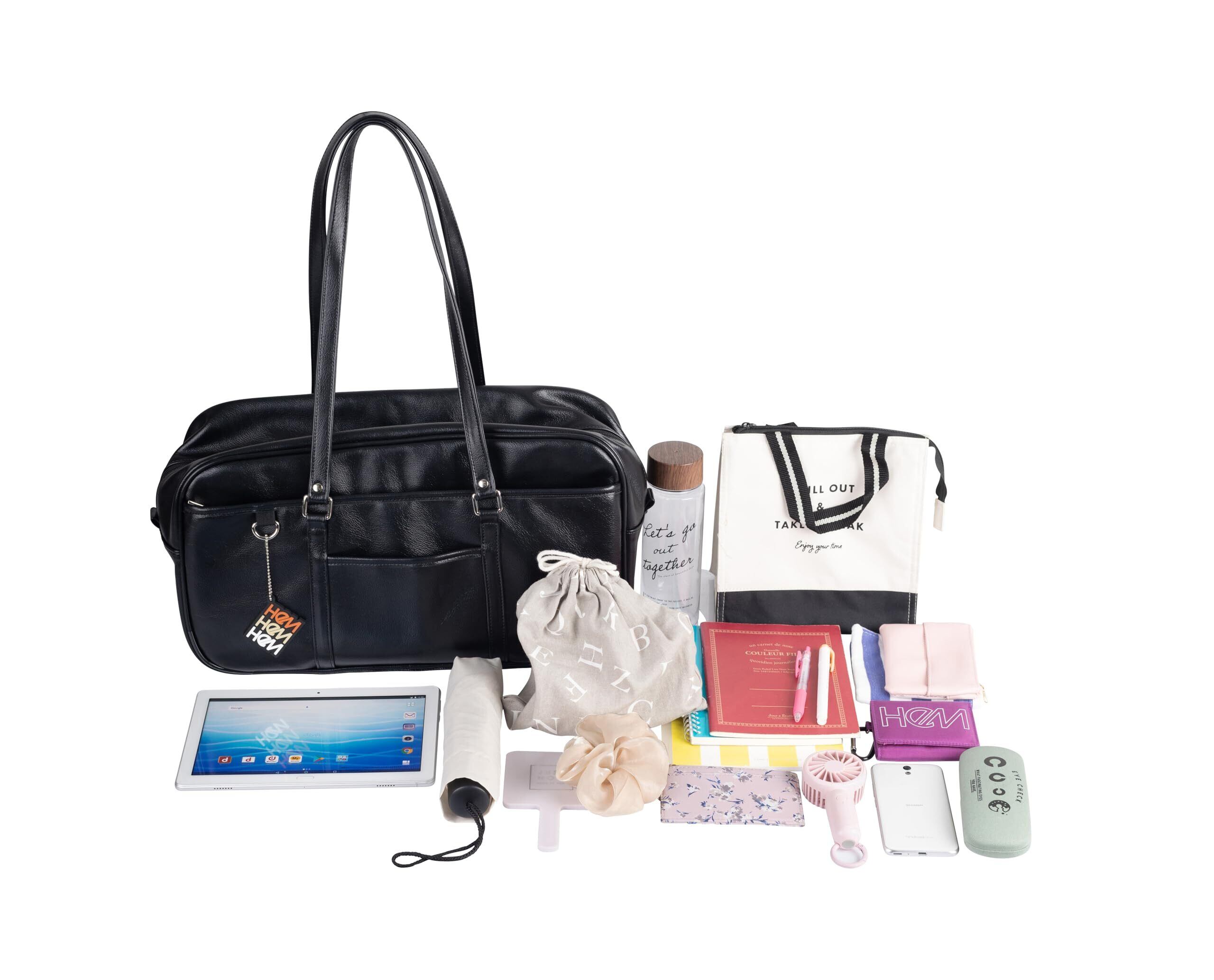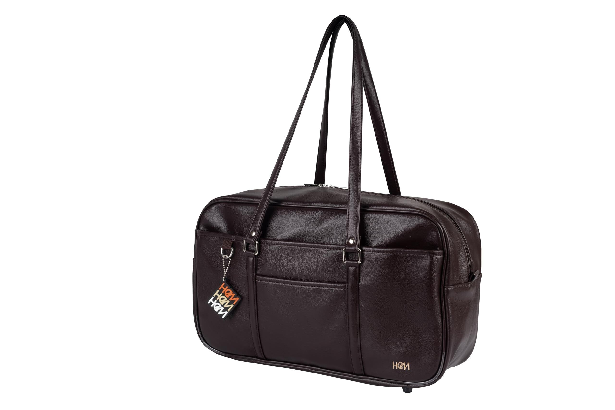 [ヘム] スクールバッグ ベスティー 高校生 女子 通学 ボストンバッグ 合皮 大容量 軽量 男女兼用 かわいい チャーム付き (ブラウン×ベージュロゴ)