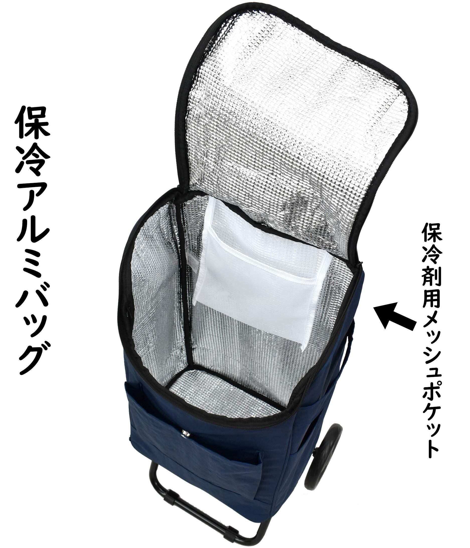 ショッピングカート 折り畳み 軽量 大容量 30L 保冷 保温 スーパー 買い物カート 階段 段差 ラクラク 大車輪 おしゃれ ワッシャー加工 ネイビー