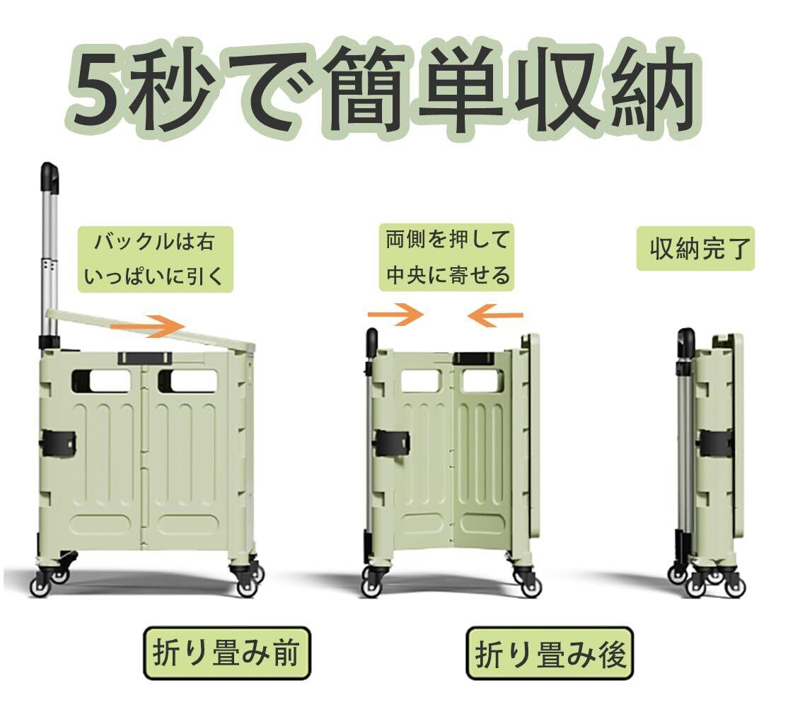 折りたたみ ショッピングカート キャリーカート コンテナキャリー 360°回転四輪 ショッピングカート耐荷70kg/80kg/90kg グリーン/クリーム ホワイト/グレー 蓋付き 買い物カート 運動会 釣り BBQ 海水浴 ピクニック キャンプ用 軽量 アウトドア 座れる 家庭用 釣り 台車 静音 (グリーン, M-4輪)
