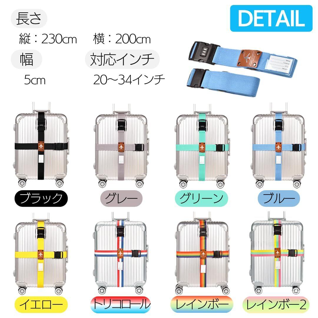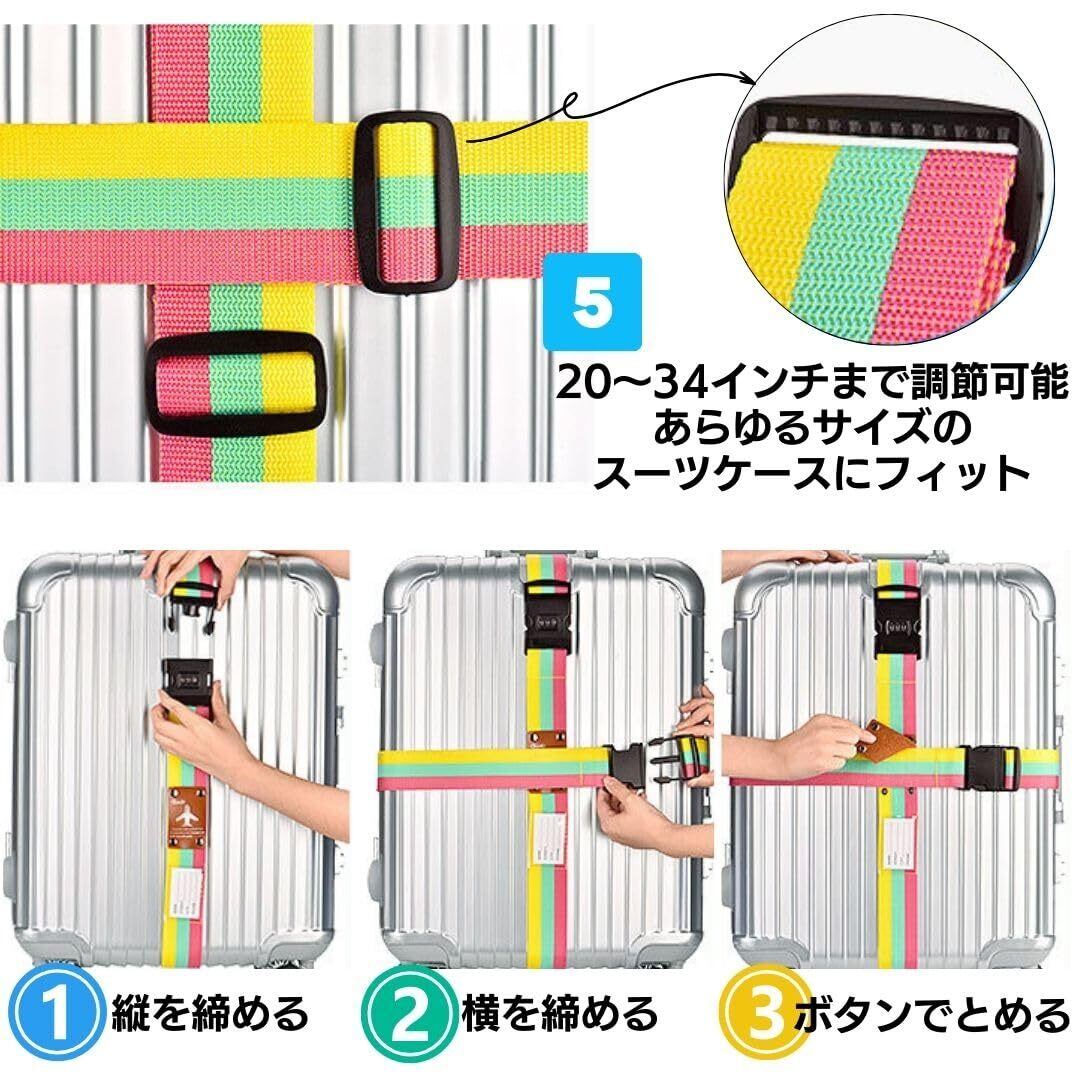 I'm so happy スーツケースベルト 鍵付き 十字型 ダイヤルロック ネームタグ 2本セット 目印 キャリーケースバンド (グリーン)