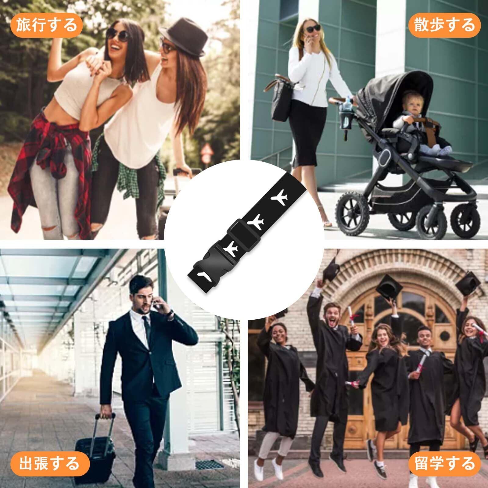 【サイズ調節可能】ベルトの長さは自由に調節できます。小さいスーツケースから大きいケースまで幅広く使用することができます。