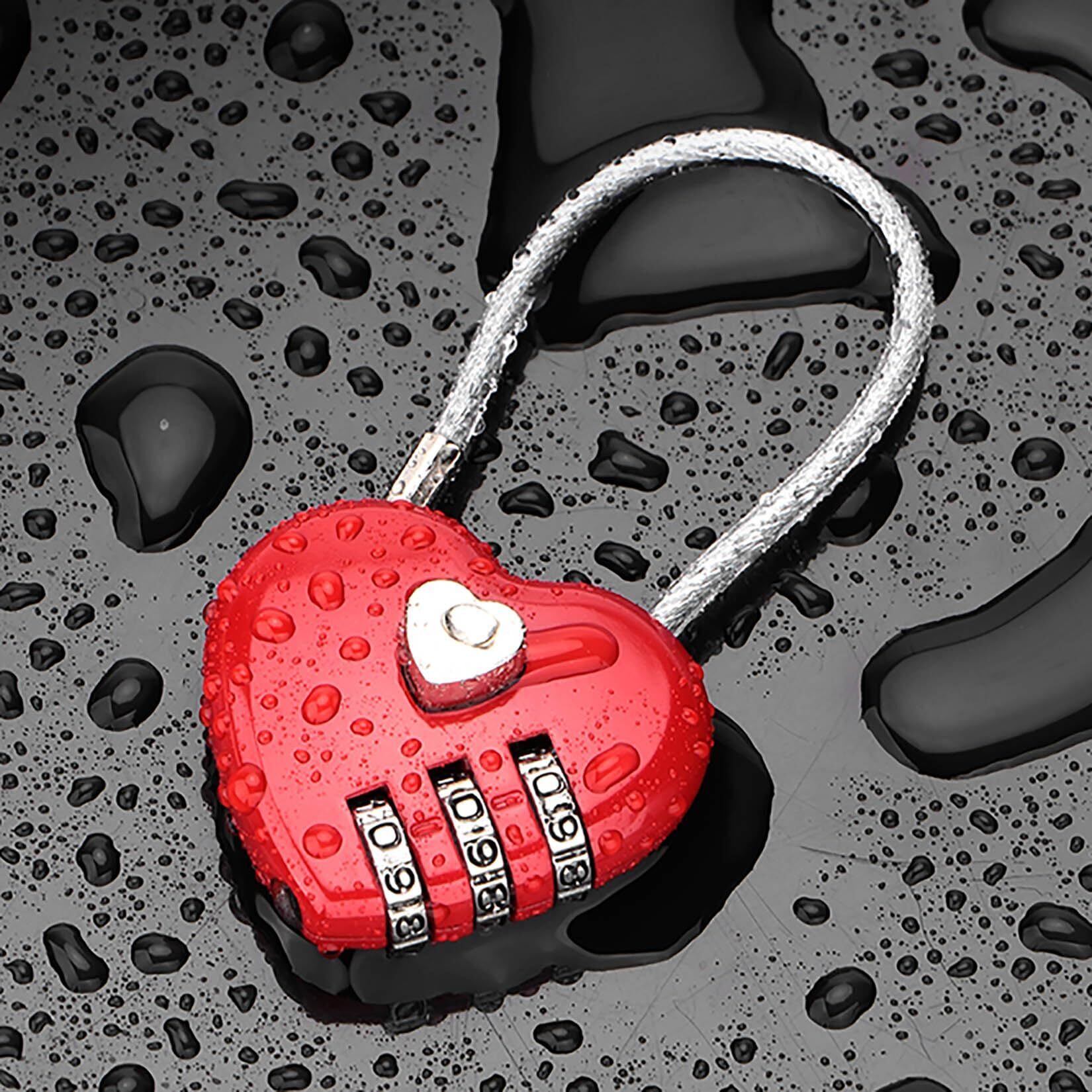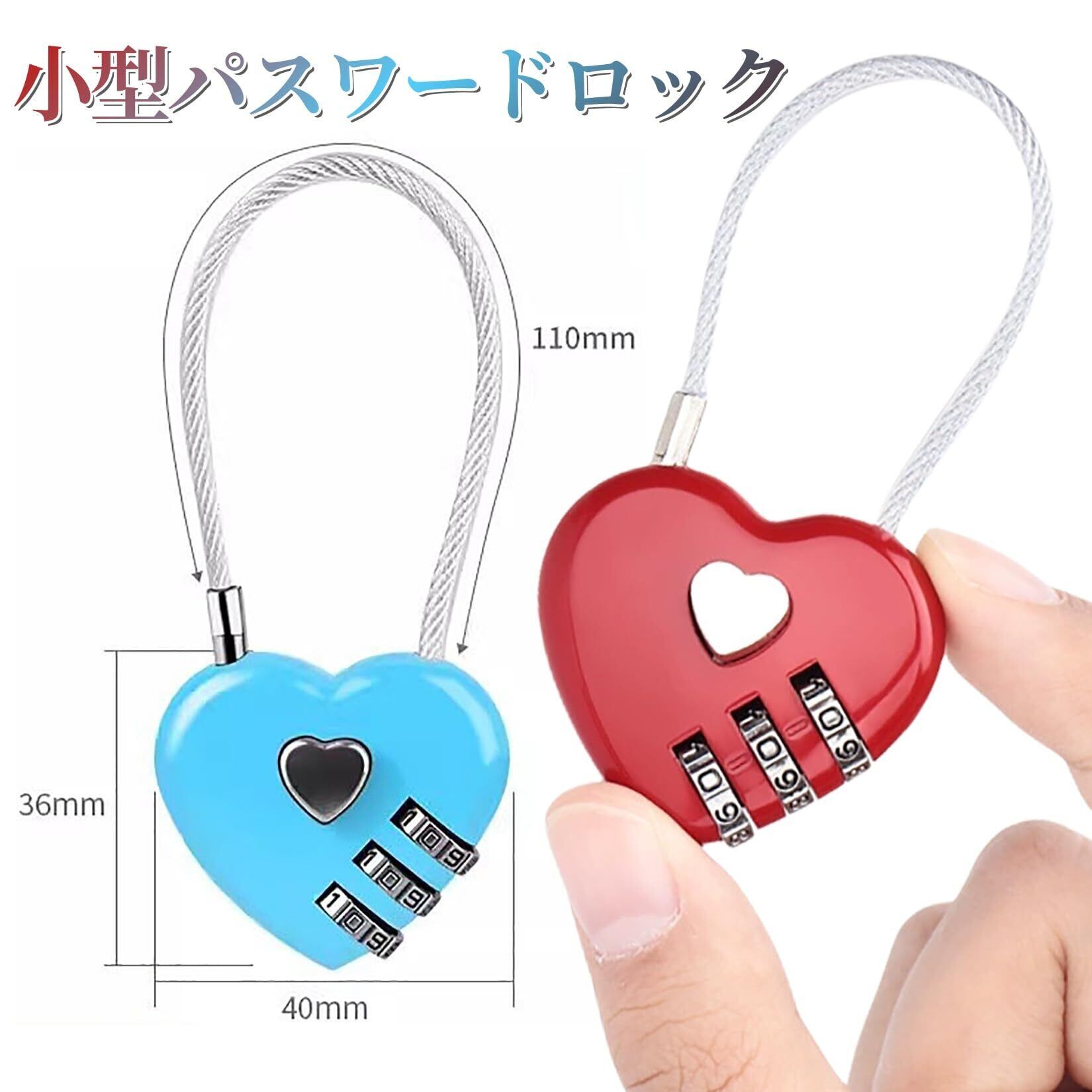 ハート型のデザインがとってもキュートな、3桁ダイヤル式のワイヤー南京錠です。ラブリーなカラーが目を引き、旅行バッグや学校ロッカー、パーソナル収納にぴったり。