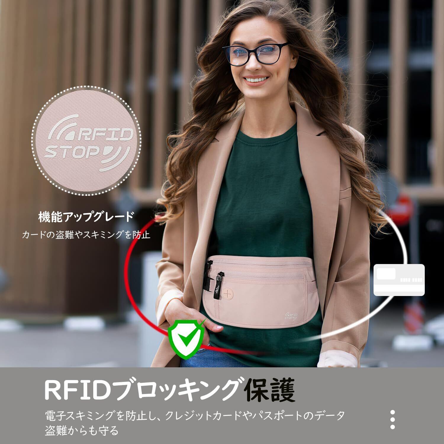 MoKo セキュリティポーチ ウエストポーチ 多機能収納 ヒップバッグ ショルダーバック 隠しポケット 軽量 RFID防犯ブロック 71~127cmまでウエストサイズ対応 散歩/登山/ランニング/アウトドア/お釣り/作業用 Pink
