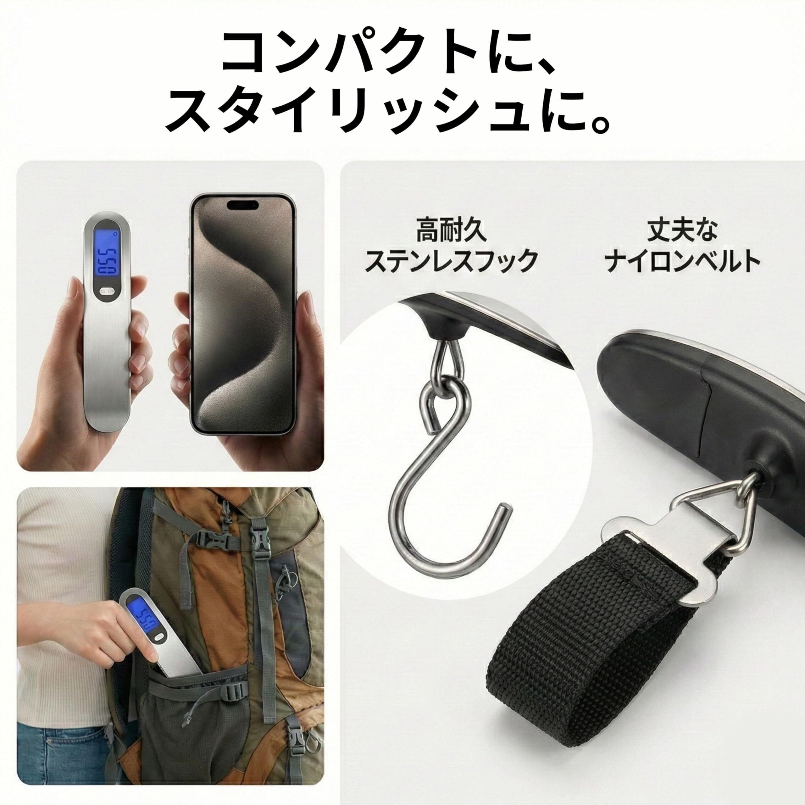 【コンパクトで持ち運びもストレスフリー】 手のひらサイズのコンパクト設計かつ軽量仕様で、スーツケースのポケットやバッグの隙間にすっぽり収まります。旅行や出張はもちろん、宅配便の計量、釣り、アウトドア、ショッピングなど、日常のあらゆる「重さを知りたいシーン」で活躍します。