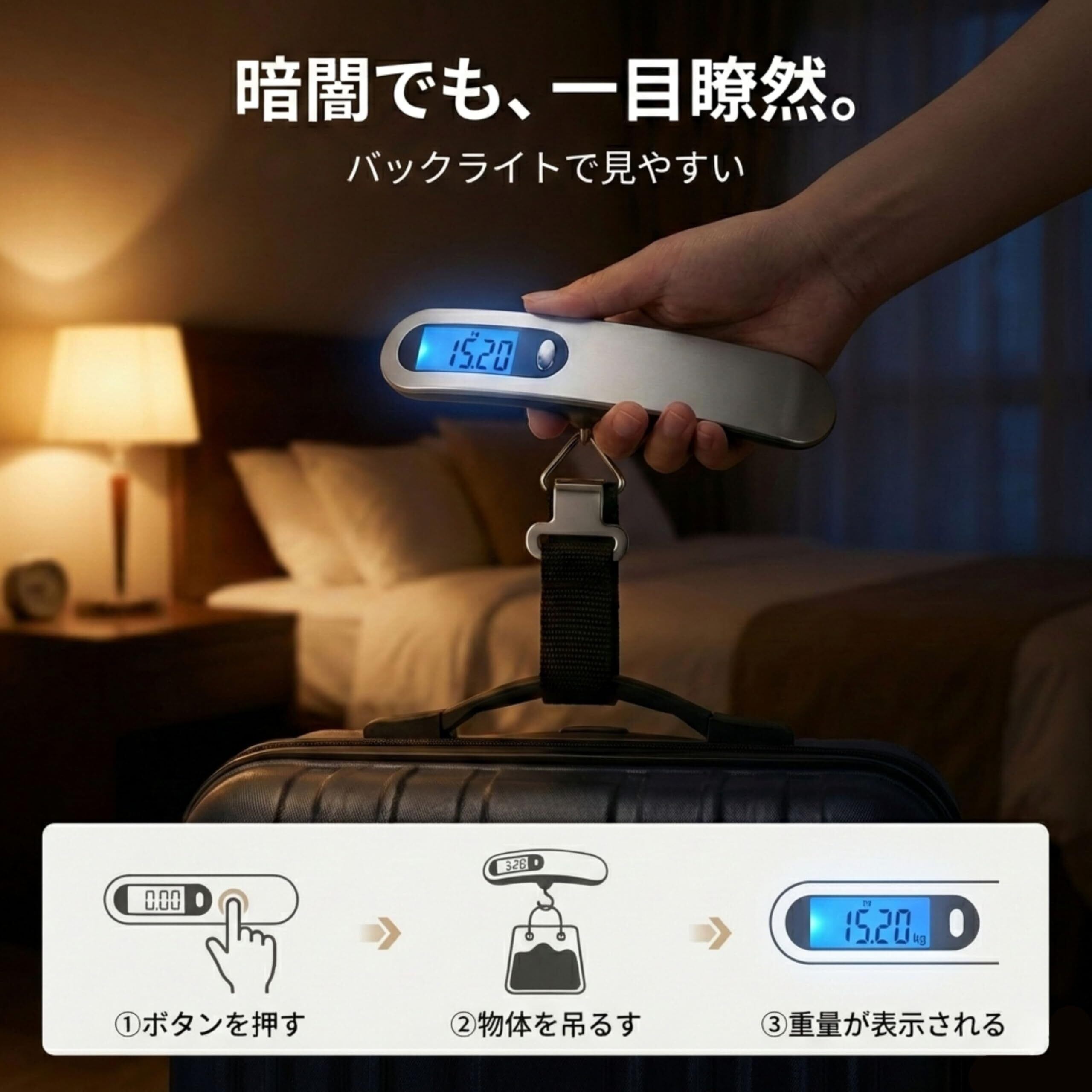 旅行用のスーツケースを中心に、様々な物の重さを計測することができるはかりです。