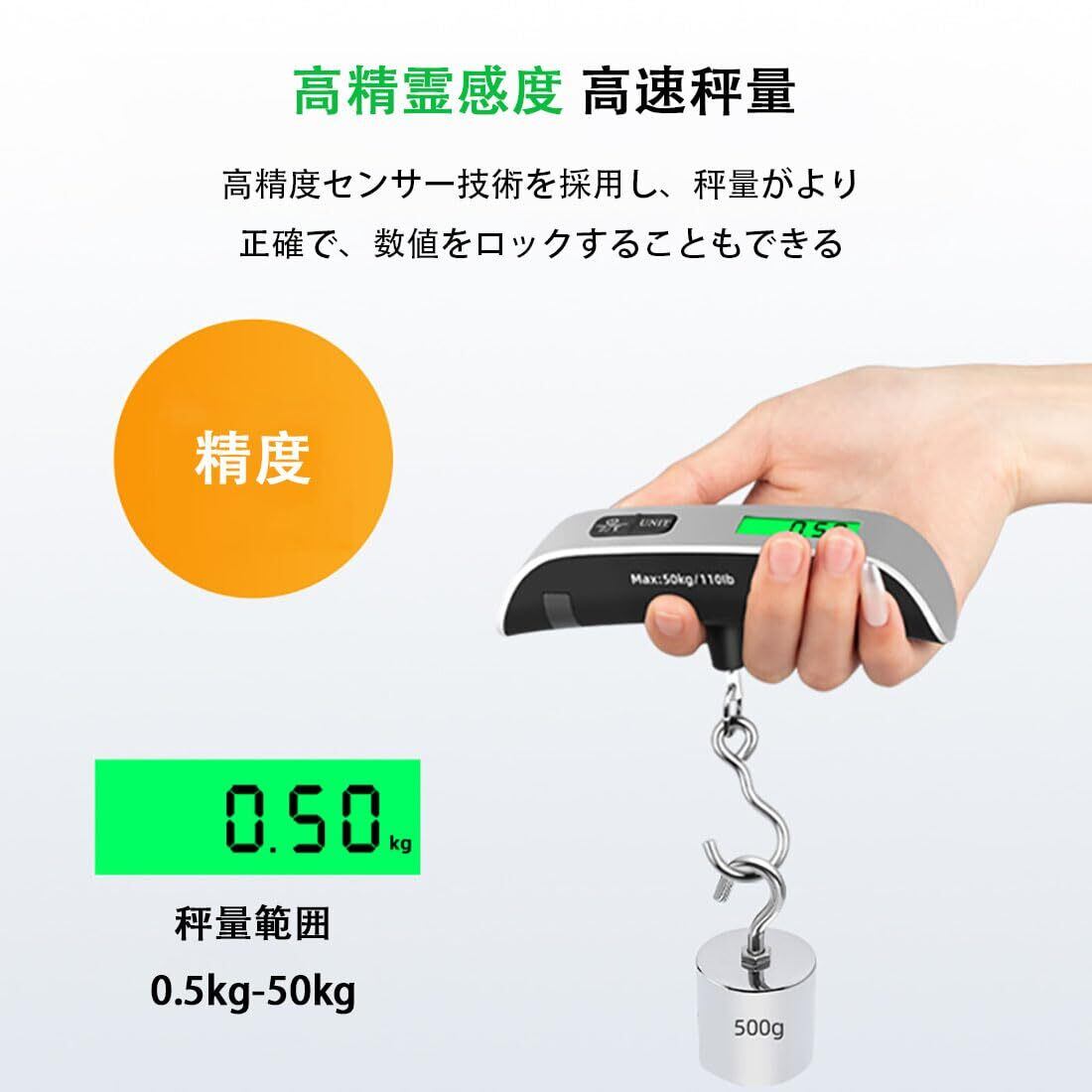 デジタル吊り下げ秤 ハンドヘルド 荷物 旅行はかり 50KG 高精度 人間工学設計 コンパクト 軽量 単位変換 読みやすさ 時間と労力を省く 高い耐久性 買い物 釣り 旅行など対応(1個)