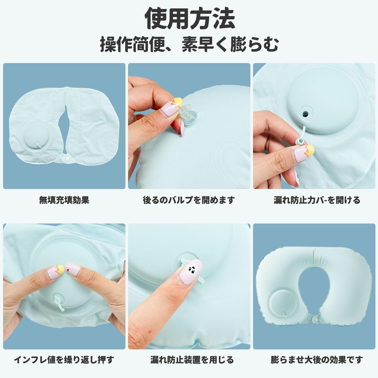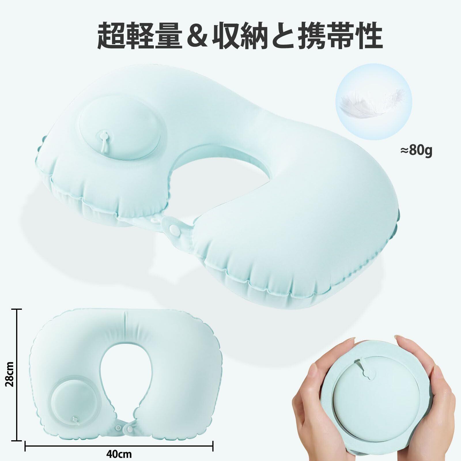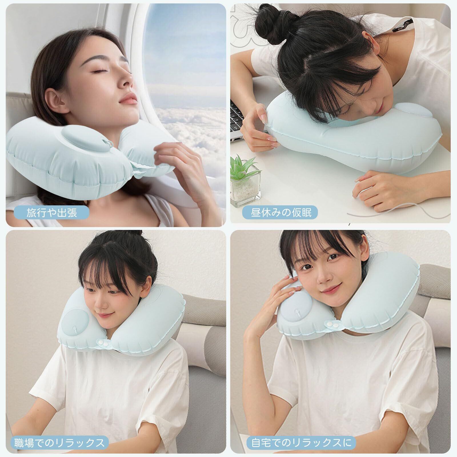 【2022最新】ネックピロー コンパクト 飛行機 枕 昼寝枕 オフィス、自宅で休む、海外旅行 便利グッズ エア枕 首枕 (ライトブルー)