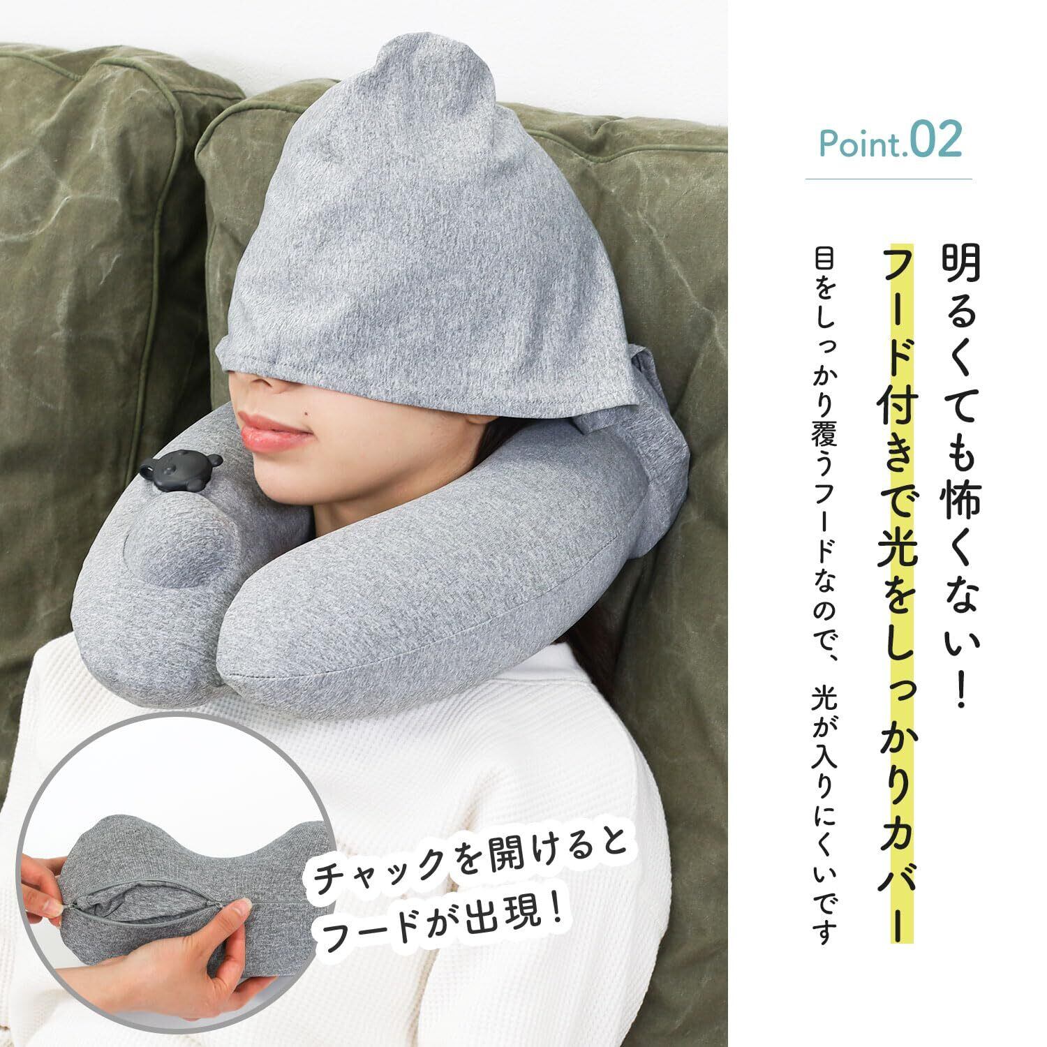 【特価セール】[MRG] ネックピロー フード付き 携帯枕 トラベルピロー U型 コンパクト 折り畳み 洗える 空気枕 収納袋付き 旅行 車 バス 新幹線 オフィス 昼寝