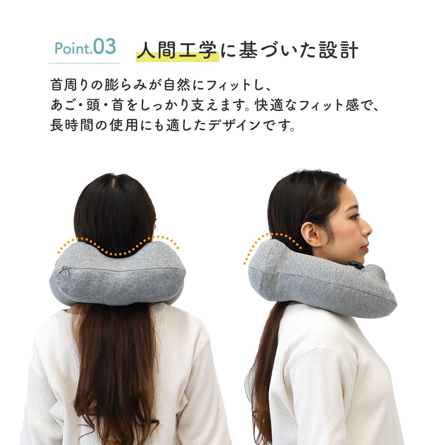 【首にやさしい快適仕様】人間工学に基づいた設計で、首周りにやさしくフィット。自然な形状であご・頭・首をしっかりサポートし、快適な使い心地を実現しました。
