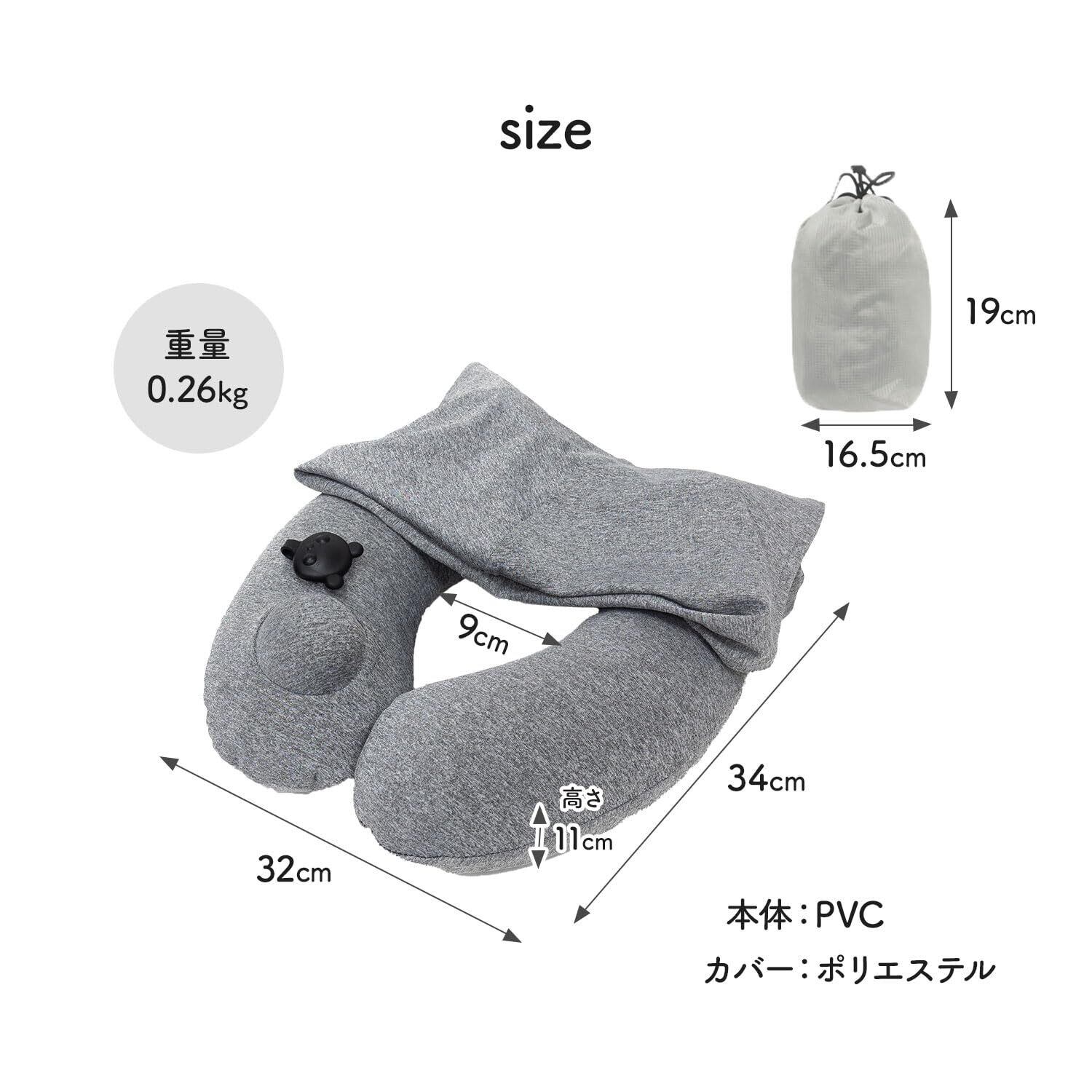 【素材】PVC+ポリエステル 【サイズ】34×32×11cm、重量:0.26kg 【セット内容】ネックピロー、収納袋