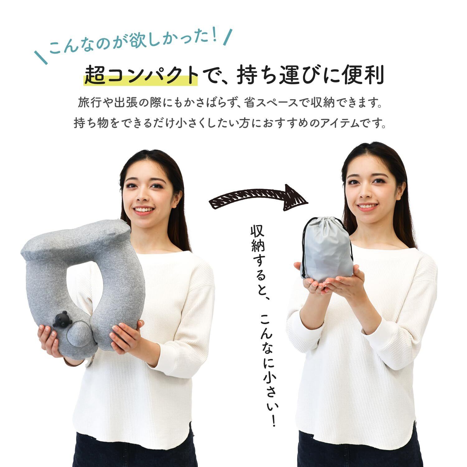 【押すだけ簡単!超軽量ネックピロー】超コンパクトで持ち運びに便利なフード付きネックピローが新登場!小さく収納できるサイズで、旅行や出張でも場所を取りません。フード付きの2WAYタイプで、光や日差しから目元をやさしくカバー。リラックスタイムや移動中の快適グッズとして活躍します。