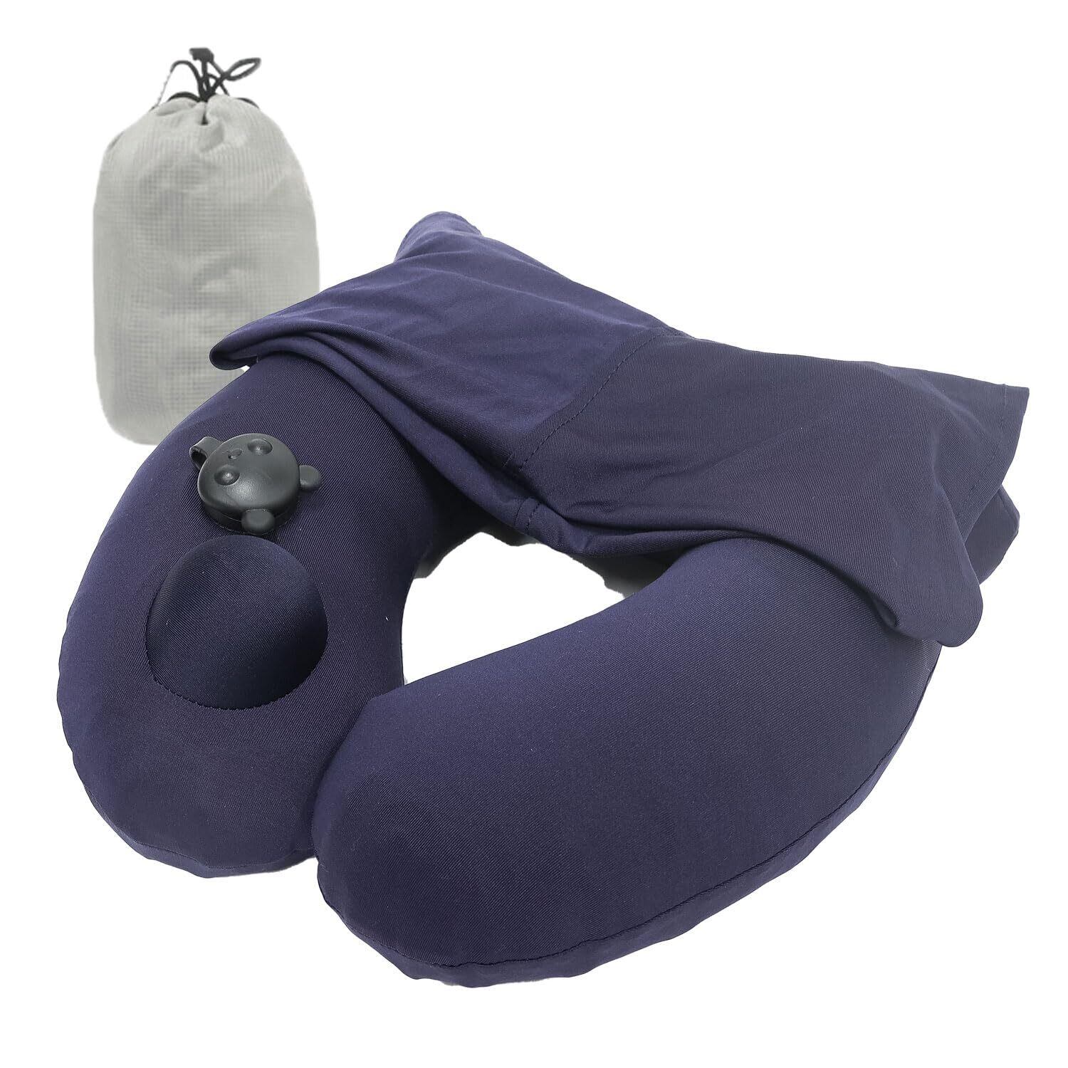 [MRG] ネックピロー フード付き 携帯枕 トラベルピロー U型 コンパクト 折り畳み 洗える 空気枕 収納袋付き 旅行 車 バス 新幹線 オフィス 昼寝