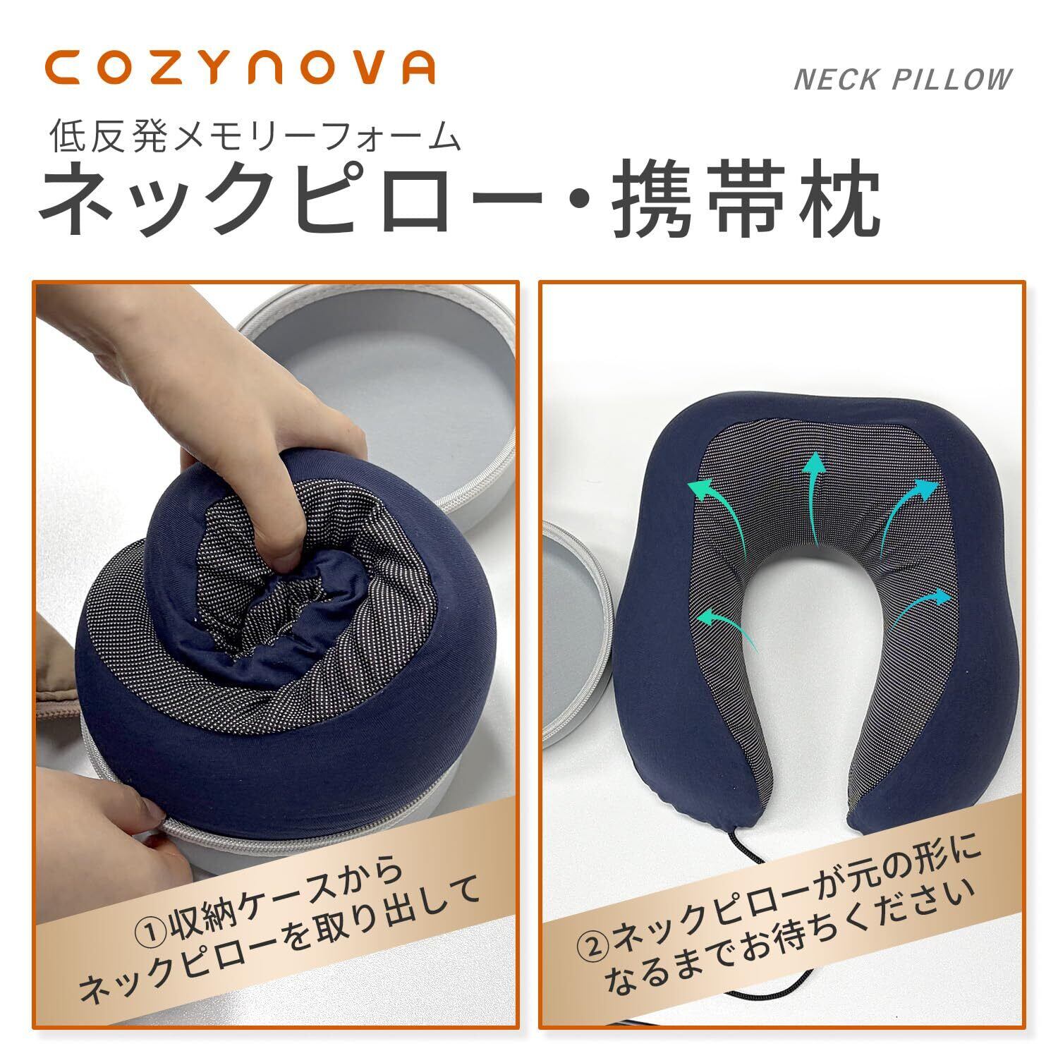 【数量限定】COZYNOVA ネックピロー 飛行枕 U型 コンパクト 収納ケース 首枕 低反発 携帯枕 オフィス 旅行 出張 飛行機 車 調整可能 洗えるカバー 健康グッズ ギフト プレゼント ネイビー