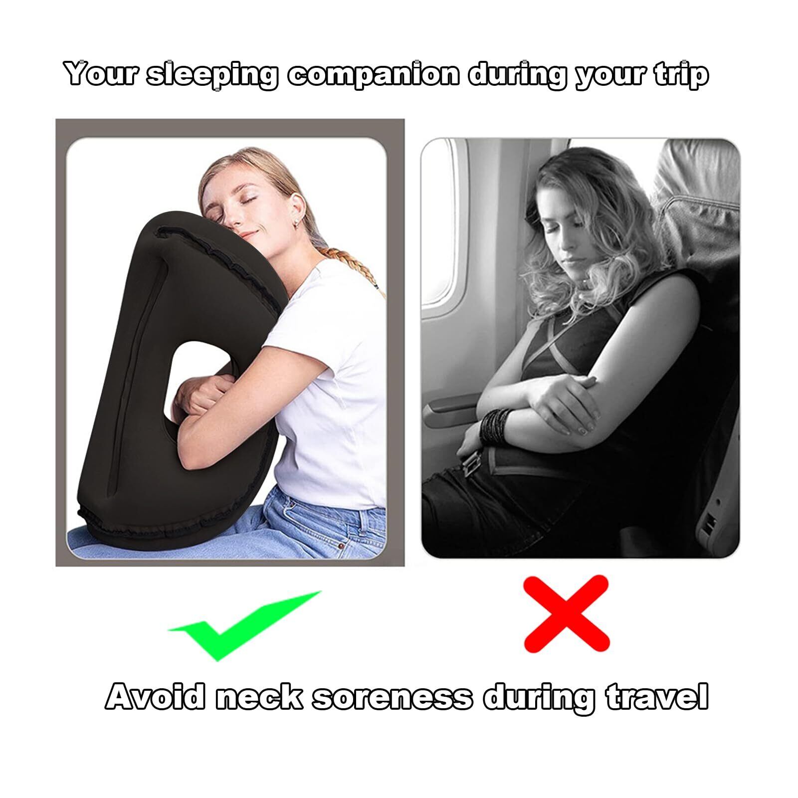 【2022最新】旅行枕、新しいアップグレード飛行機の枕、飛行機枕の両端の大きさの頭の設計は首筋を完璧に支持し、空気入れバッグ、眼帯、耳栓と枕カバーを取り外しやすく、2種類の空気入れ方式、携帯に便利で、旅行、出張中の多種のシーンの睡眠に適している (ブラック)