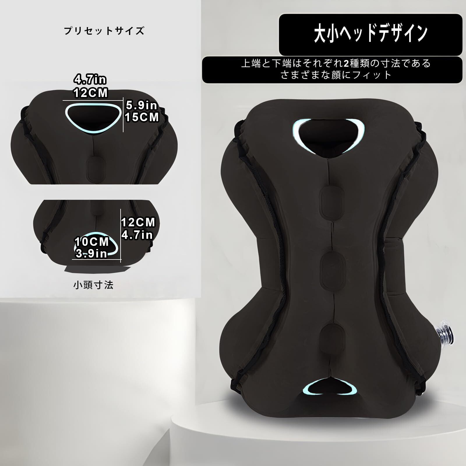 旅行枕、新しいアップグレード飛行機の枕、飛行機枕の両端の大きさの頭の設計は首筋を完璧に支持し、空気入れバッグ、眼帯、耳栓と枕カバーを取り外しやすく、2種類の空気入れ方式、携帯に便利で、旅行、出張中の多種のシーンの睡眠に適している (ブラック)