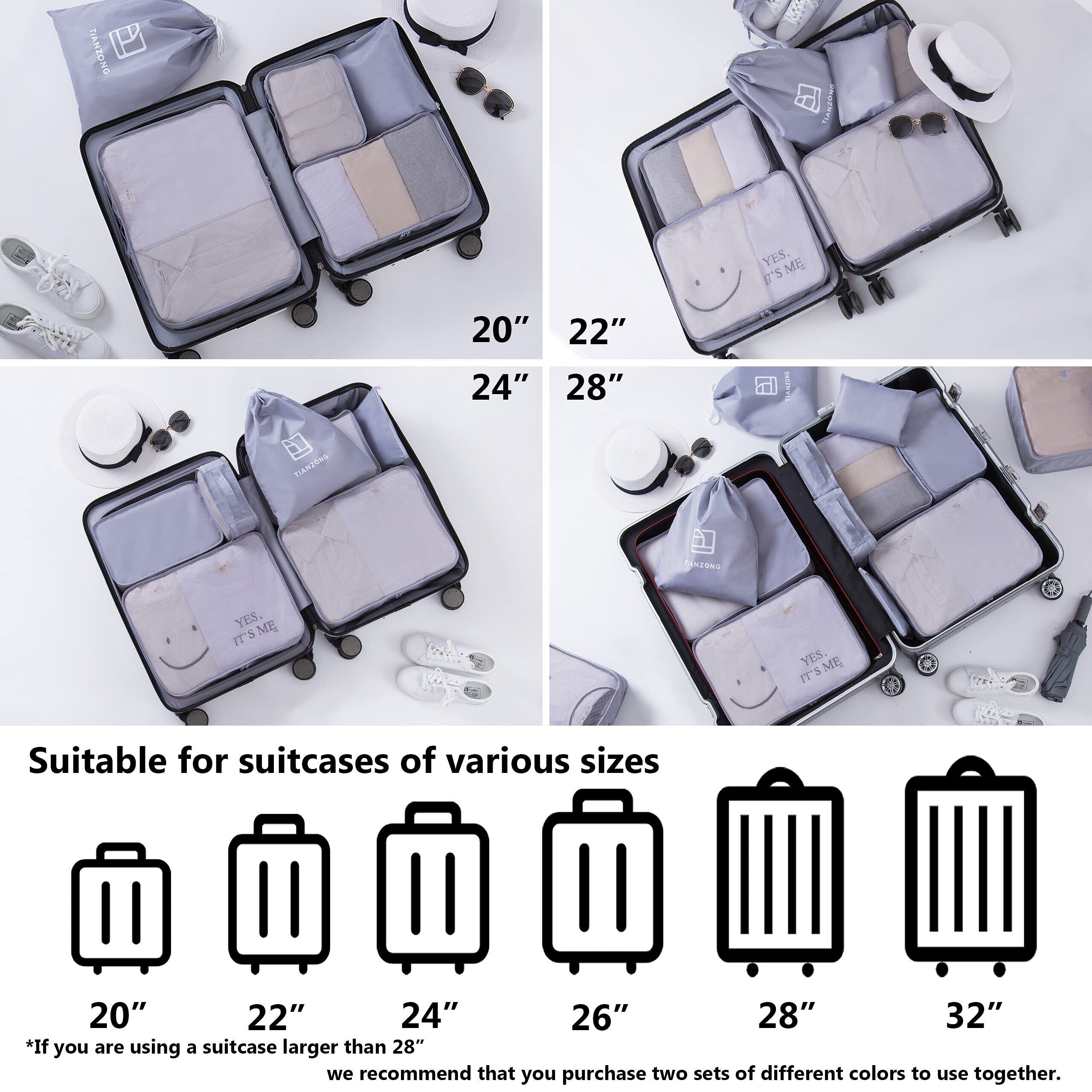 TIANZONG トラベルポーチ パッキングポーチ アレンジケース 7点セット 大容量 超軽量 出張 旅行 便利グッズ 下着収納キューブ 衣類収納 鞋袋 (グレー 7)