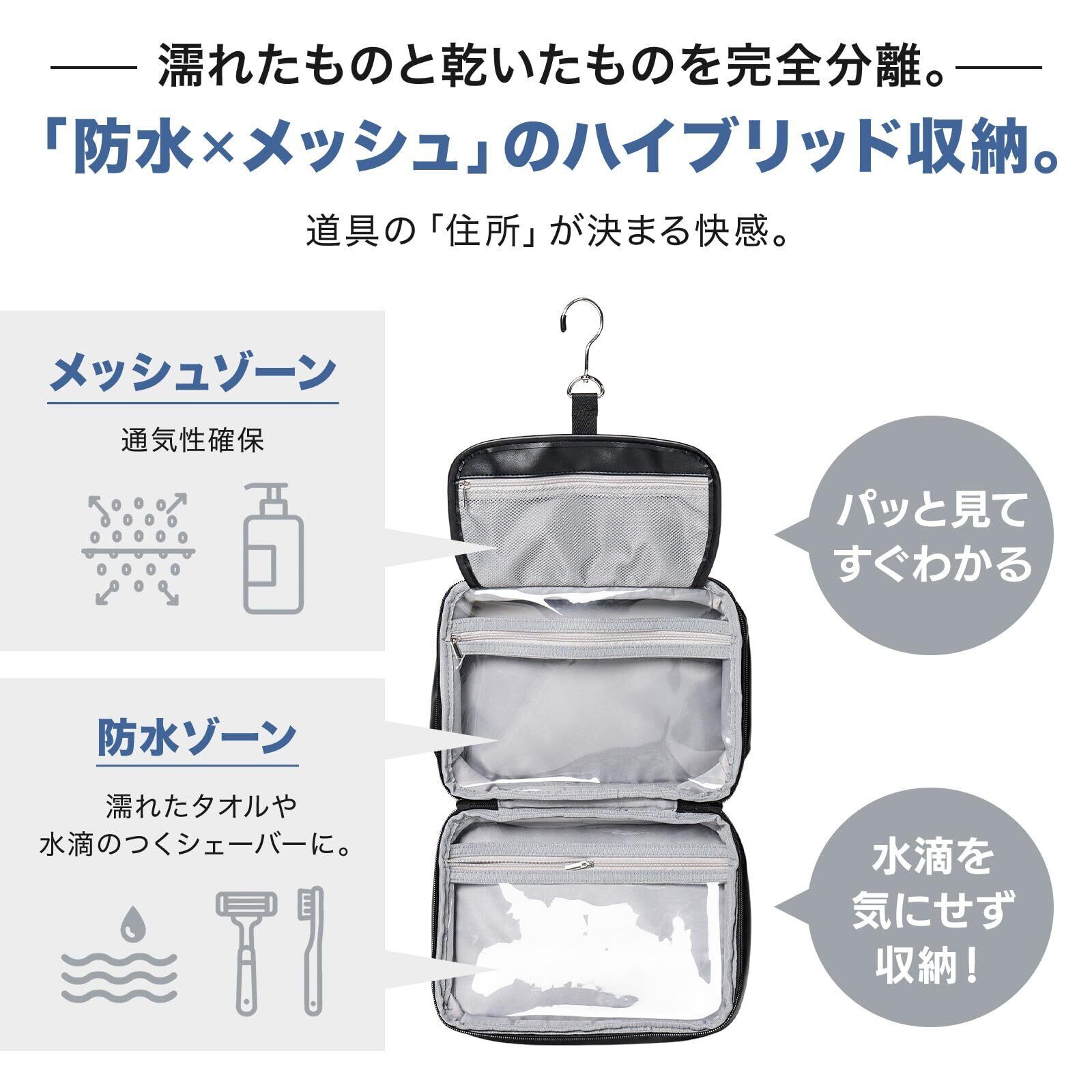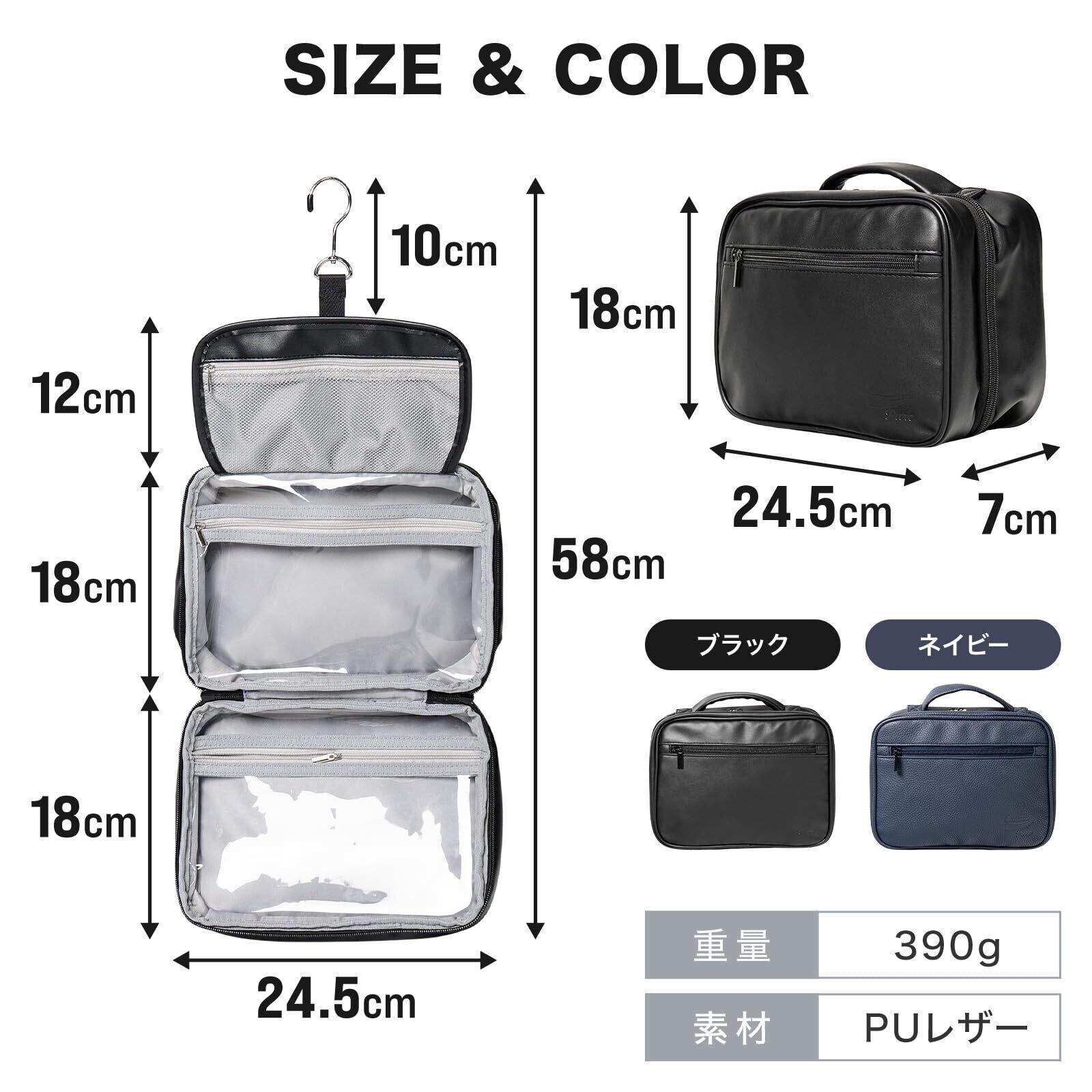 【在庫セール】CascadePure メンズ 吊り下げトラベルポーチ 大容量 トイレタリーバッグ キャリーオン対応 出張・旅行(ブラック/ネイビー) (ブラック)