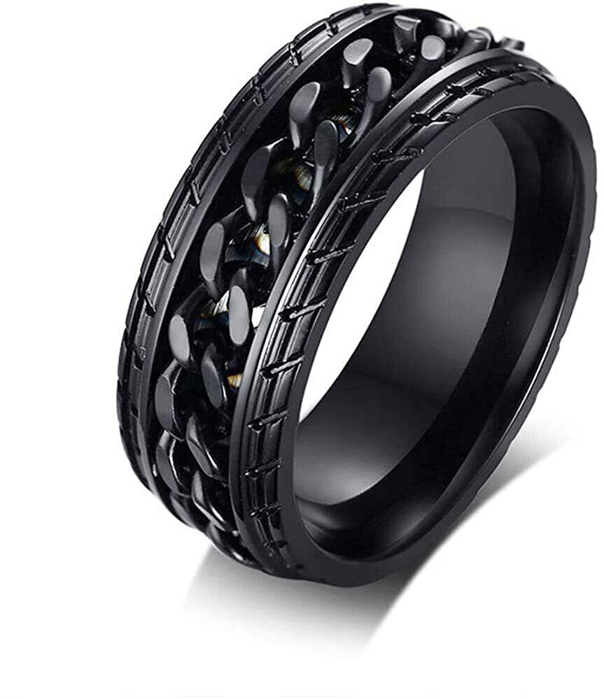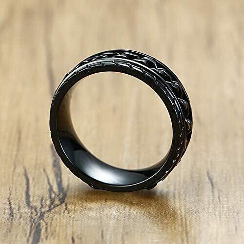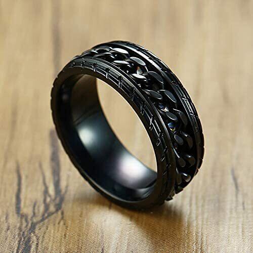 Rockyu ブランド 人気ジュエリー 指輪 メンズ ステンレス 金属アレルギー対応 ブラック タイヤ チェイン 回転 回る メンズリング 14号 ハワイアン 婚約 プレゼント