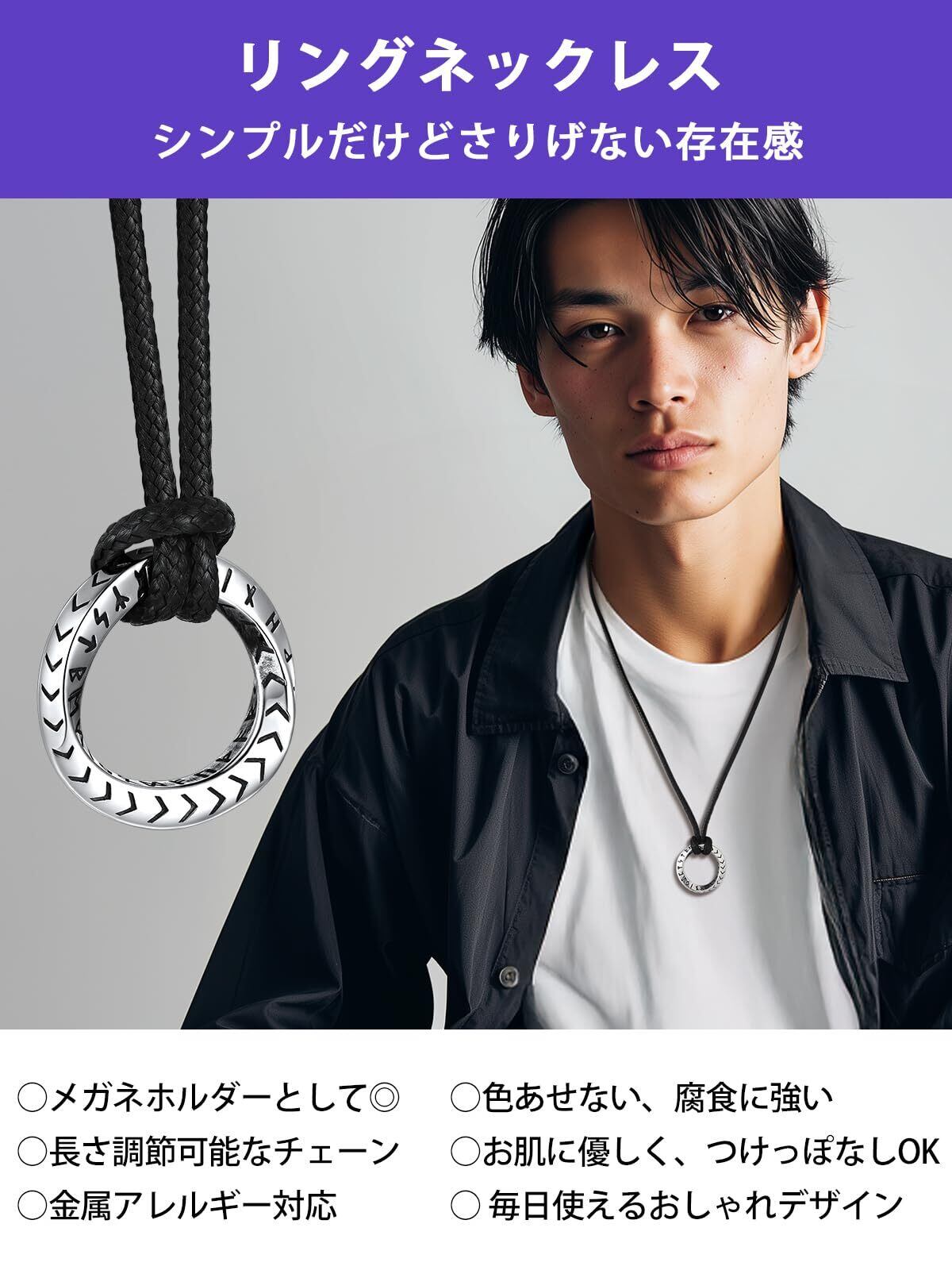 【新着商品】[Richsteel] リング ネックレス メンズ メガネホルダー サージカルステンレス ペンダント用 ロングチェーン 長さ調節可能 水対応 シンプル 男性 アクセサリー