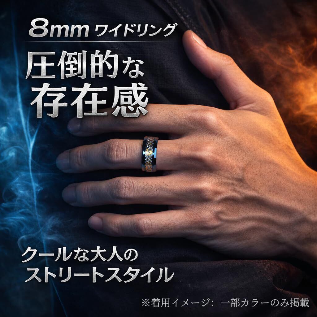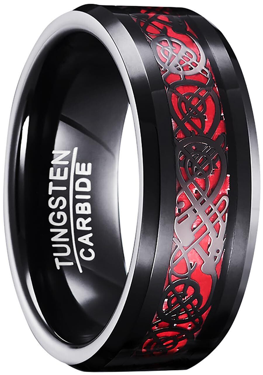 083BASE タングステンリング メンズ ドラゴンデザイン カーボンファイバー 8mm幅 平打ち 指輪 レッド サイズ24号