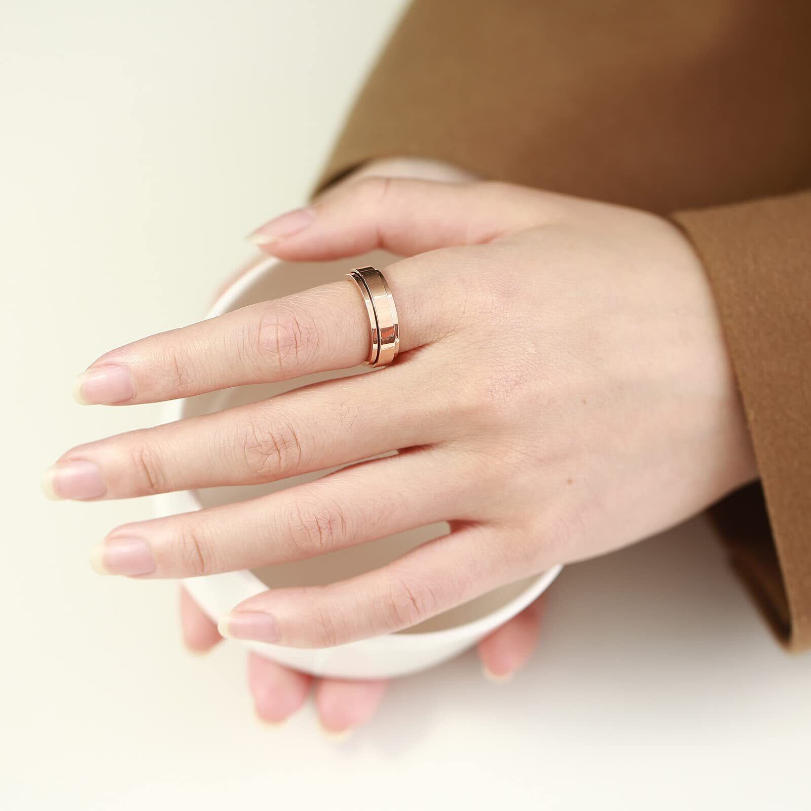[Rockyu] スピナーリング ステンレス 指輪 人気 金属アレルギー対応 光沢仕上げ 回転式 無地デザイン 幅6mm