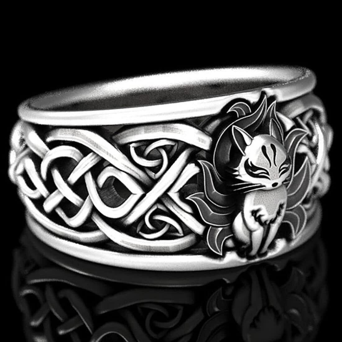 【九尾の狐指輪】このリングは、中国や日本の伝説に登場する九尾の狐をデザインしたユニークな指輪です。九尾の狐の彫刻が細部まで精巧に作り込まれています。