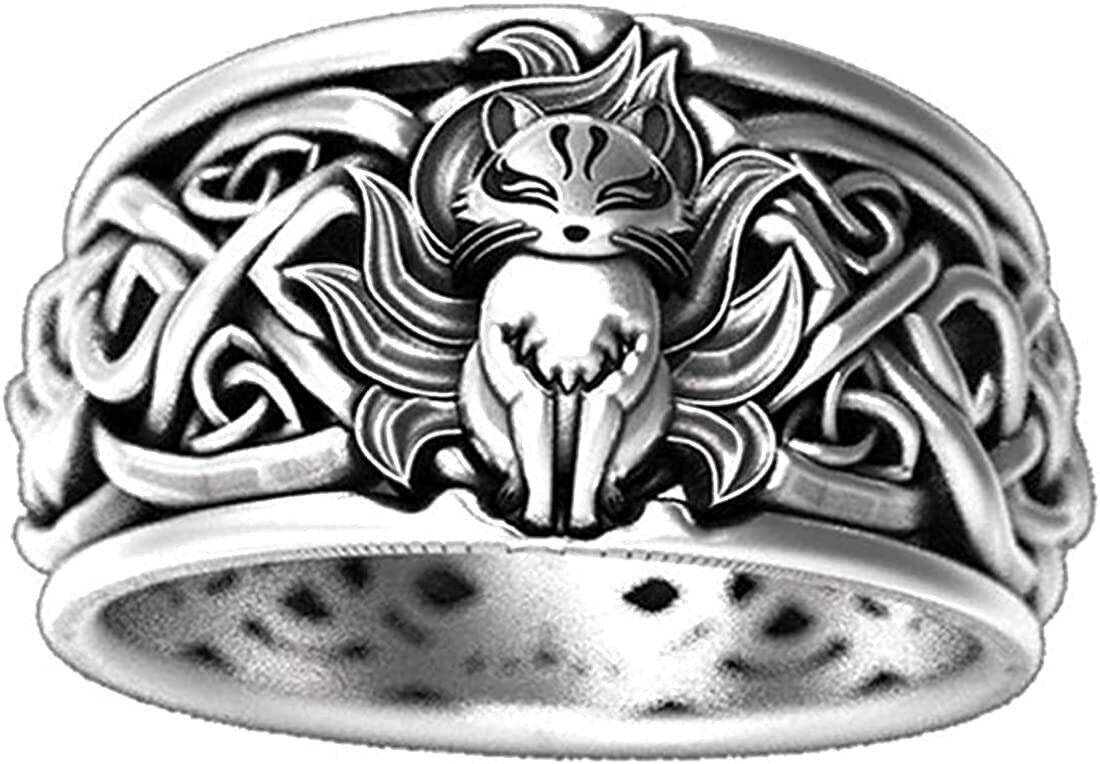 [Rockyu] リング メンズ シルバー 九尾の狐指輪 おしゃれ 狐指輪 ステンレス 金属アレルギー対応 狐の指輪 彼氏 クリス