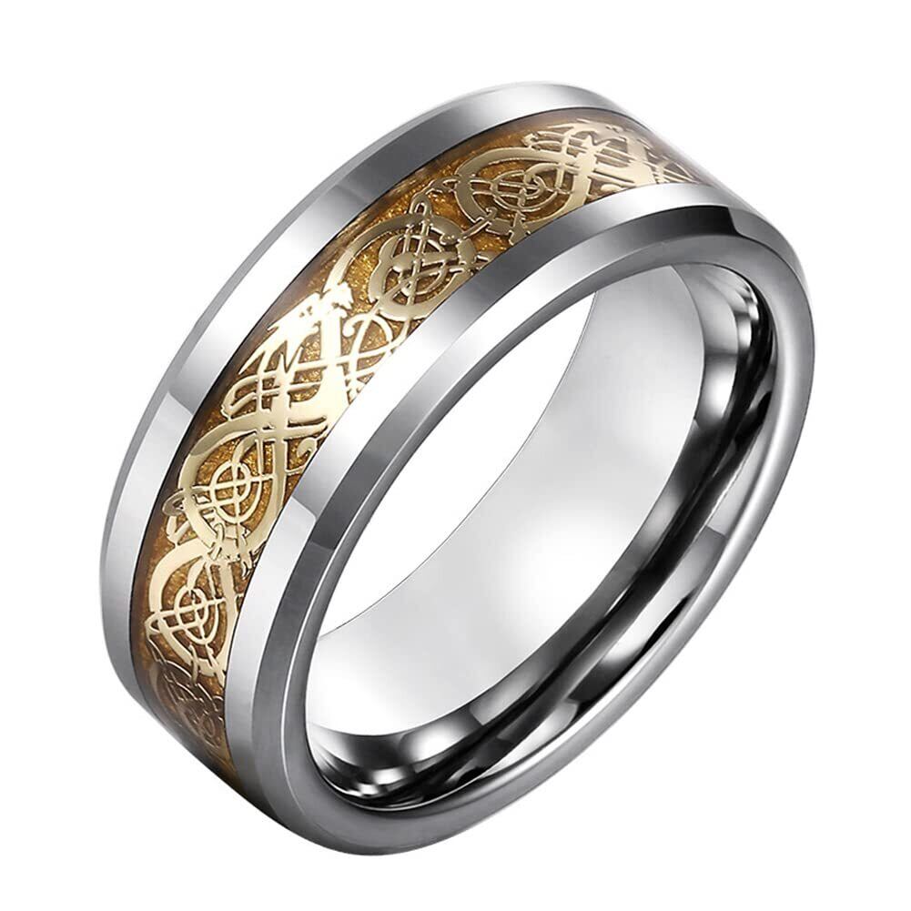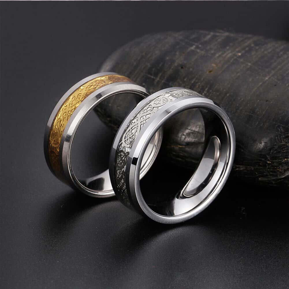【龍紋指輪】古代ケルト族の描法を用いて描かれたドラゴンのイメージには、魔法をかけったお守りのタングステン指輪であります。派手過ぎず、地味過ぎない、普段使いでもフォーマルでも大活躍する、人気のメンズリングです。【高品質なタングステン製】本物のタングステンカーバイドによって作られており、耐久性、低刺激性、優れた耐引掻性などの性能があり、いつまでもその高度な輝きを失いません。