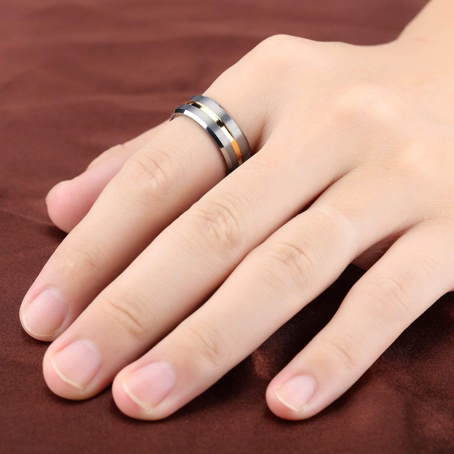 「Rockyu 指輪」 タングステン リング メンズ 指輪 おしゃれ シルバー ゴールド 金線 指輪 8号(指周り:47mmに合う) 幅:8mm タングステン比重:金とほぼ同じ、硬度:ダイヤモンドに匹敵、タングステンは耐久性に優れ、傷がつきにくいため、いつまでもその高度な輝きを失いません。【シンプルなデザイン】大人の男性にもピッタリのさりげなく男らしさを与えてくれる魅力的なタングステンメンズ指輪。