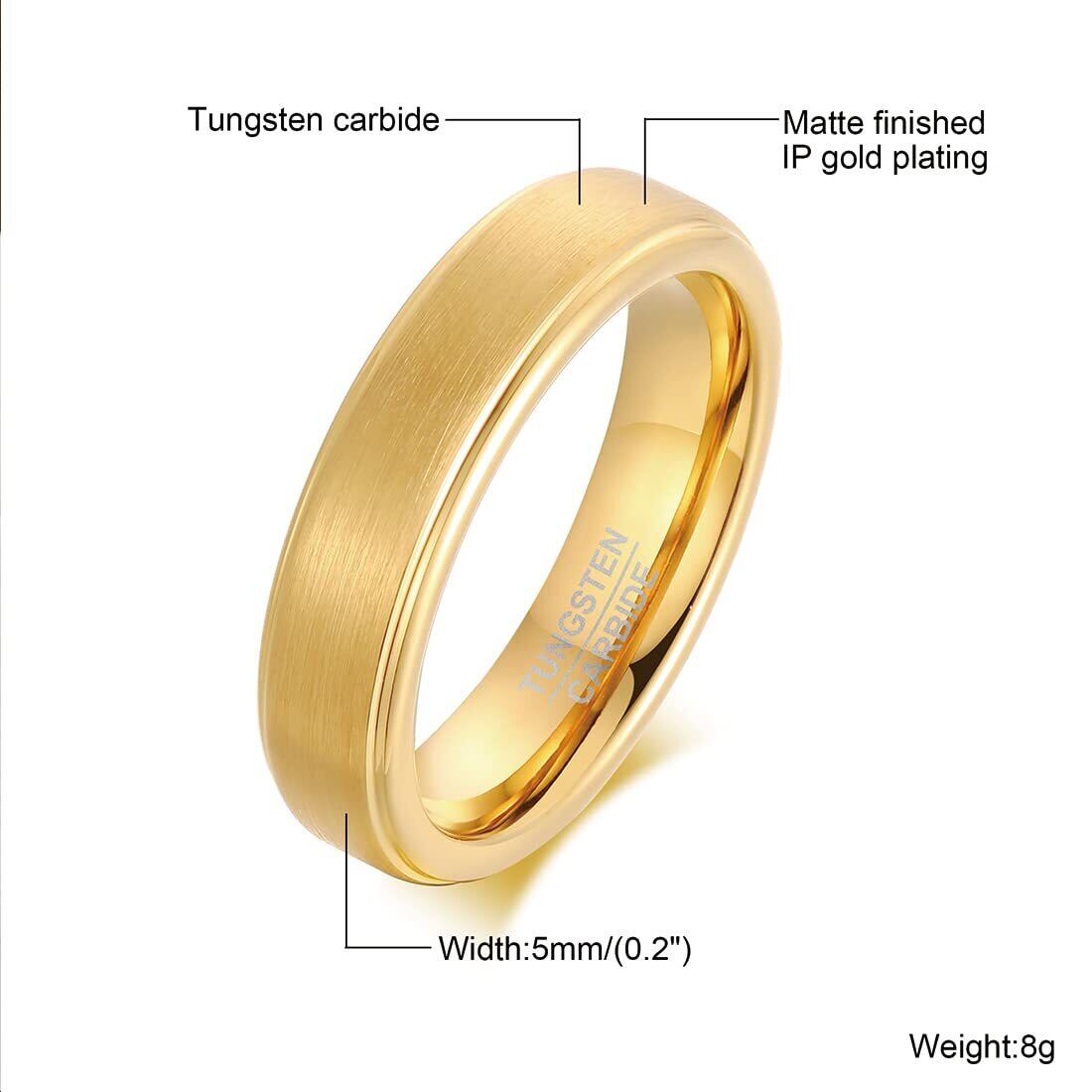 「Rockyu 指輪」 タングステン リング 指輪 ゴールド 金指輪 幅5mm 20号(指周り:62.4mmに合う) タングステン比重:金とほぼ同じ、硬度:ダイヤモンドに匹敵、タングステンは耐久性に優れ、傷がつきにくいため、いつまでもその高度な輝きを失いません。