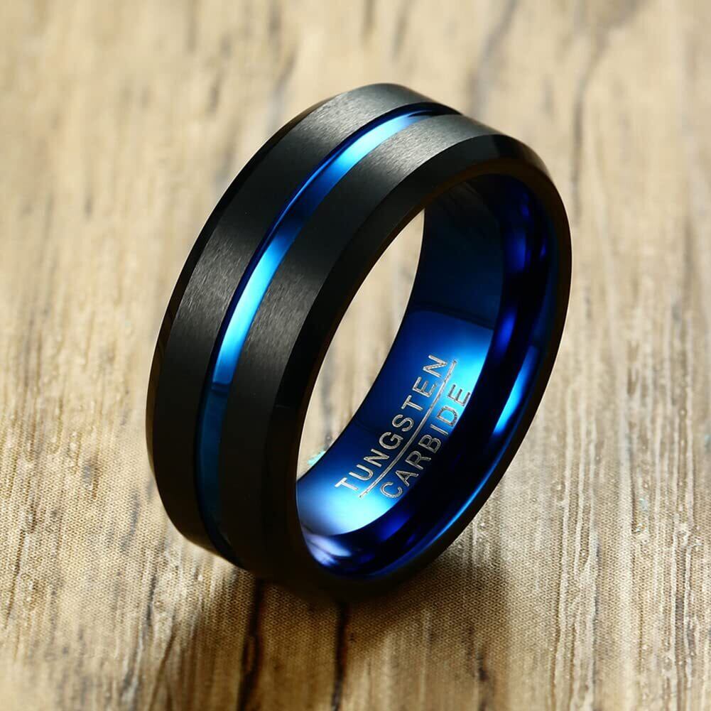 【新春セール】[Rockyu] 指輪 メンズ リング タングステン 金属アレルギー対応 ブラック ゴールド ブルー シルバー指輪 幅8mm 男性指輪 タングステン鋼 ヘアライン 金属感 平打
