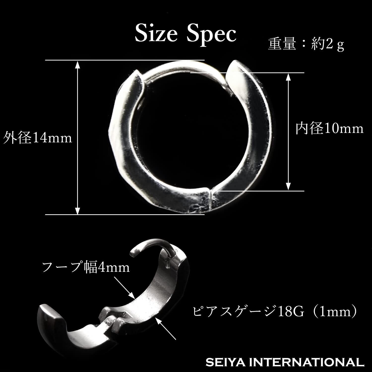 [SEIYA INTERNATIONAL] ピアス メンズ 片耳 フープピアス リングピアス フープ リング ステンレス ダイヤカット 18G