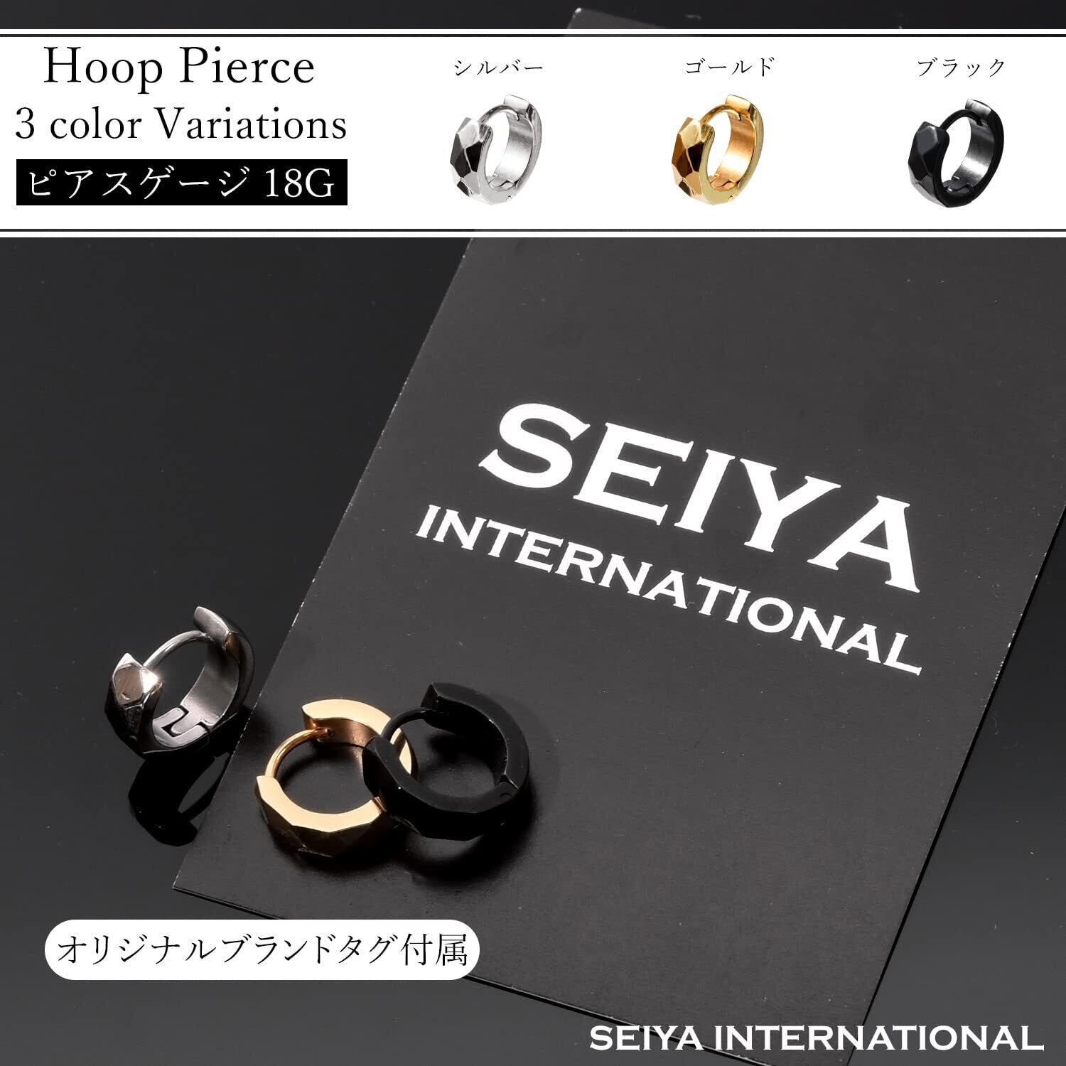 【人気商品】[SEIYA INTERNATIONAL] ピアス メンズ 片耳 フープピアス リングピアス フープ リング ステンレス ダイヤカット 18G