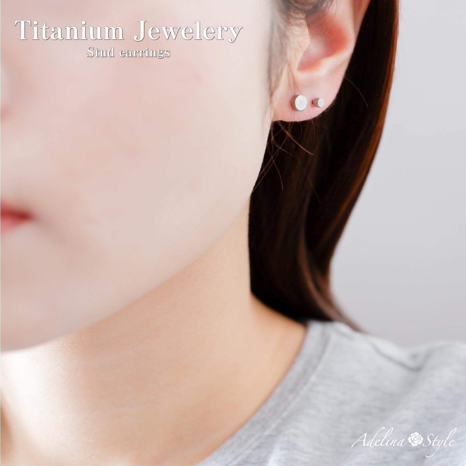 [Adelina Style] チタンピアス ダンベルピアス つけっぱなし 高耐久性 金属アレルギー対応 メンズ レディース 男女兼用 シンプルデザイン スタッド シルバーカラー 1ペア