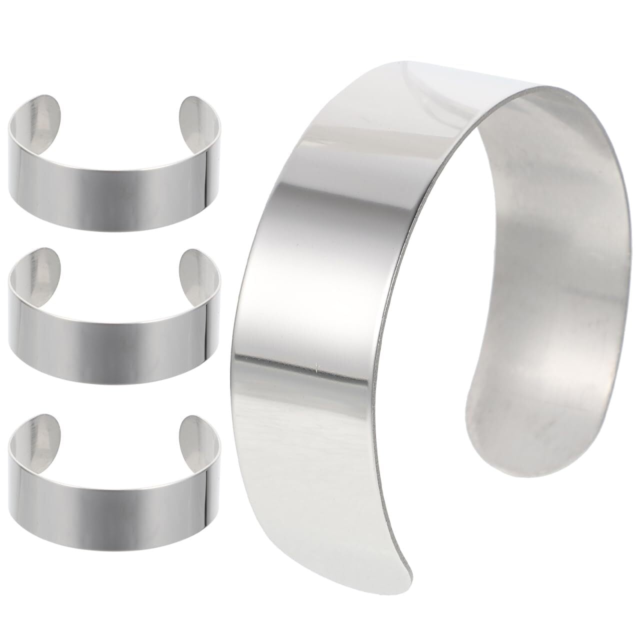 POPETPOP 4個 ステンレス製ブレスレット内芯 軽量厚手耐久性良好 用調節可能カフ 手作りレザーバングル素材兼用