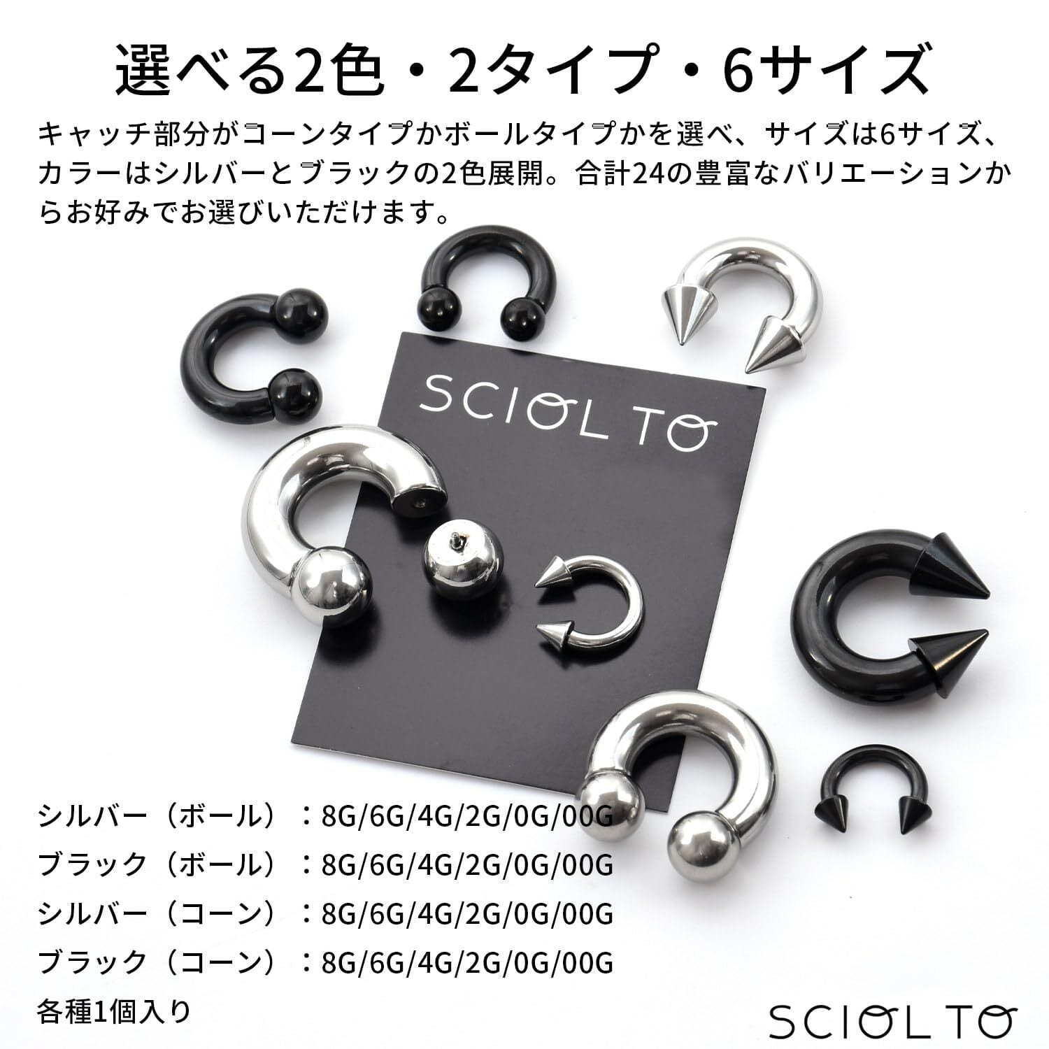 [§SCIOL TO] (ショルト)サーキュラーバーベル ラージゲージ ボディピアス [00G~8G] イヤーロブ ヘリックス 耳たぶ 軟骨ピアス ステンレス (コーン4G×シルバー)