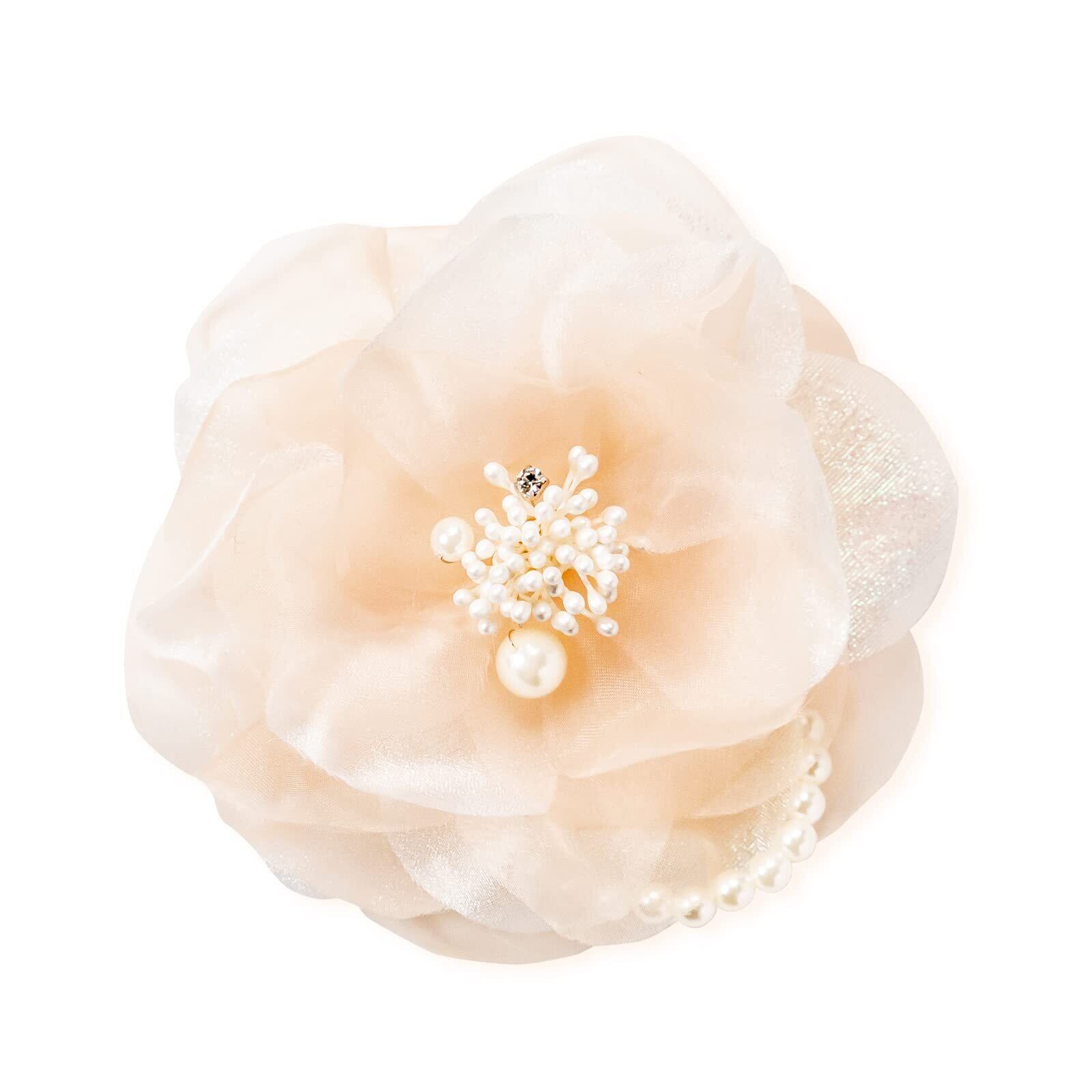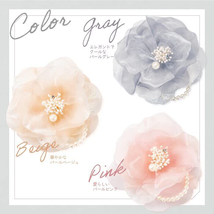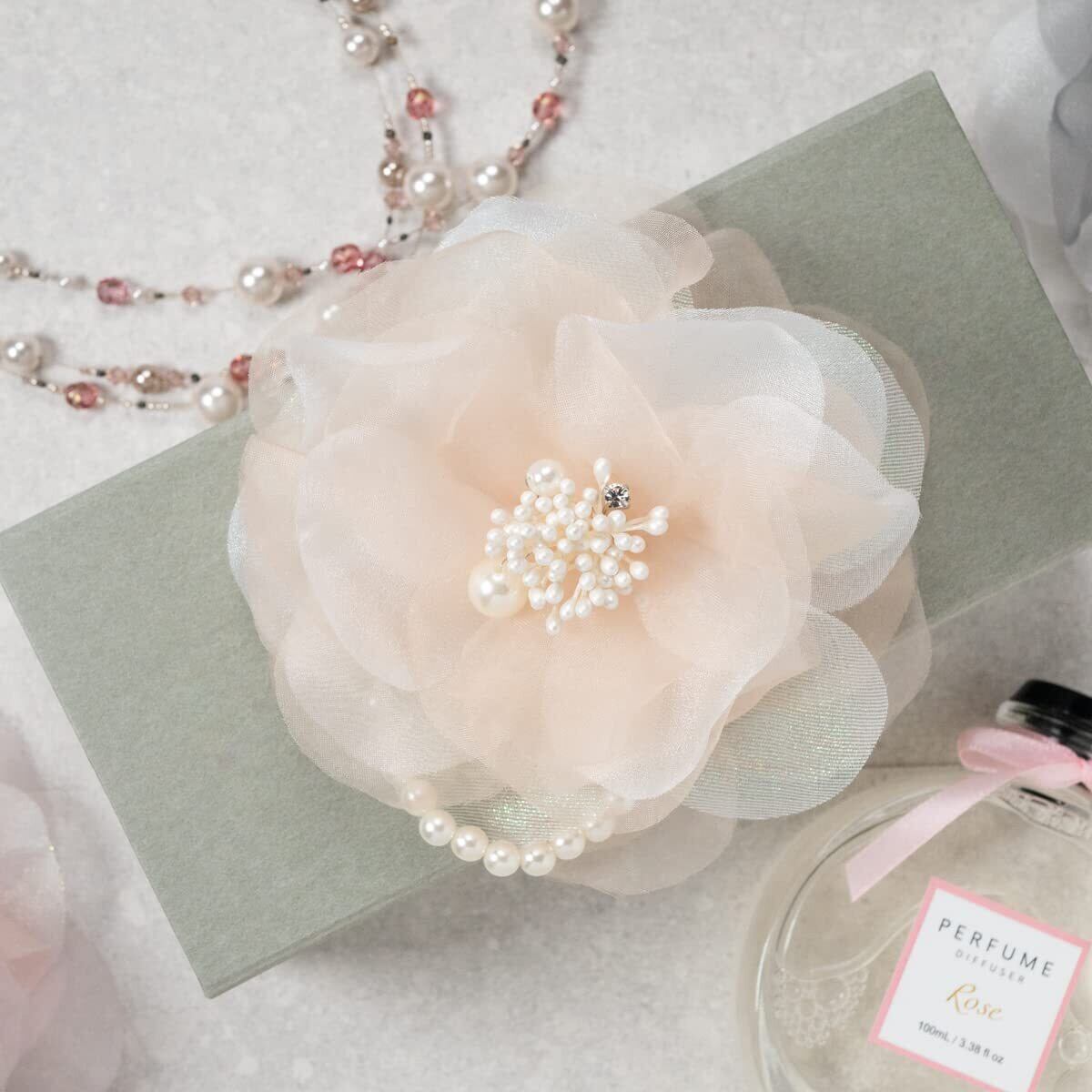 淡いベージュのコサージュは、大切な方へのプレゼントにもピッタリ!華やかな装いにもカジュアルな装いにも合わせやすく、卒業式、入学式、結婚式、発表会など、大切なシーンでお使いいただけます。