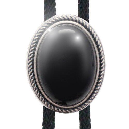 [Bowties.jp] ブラック オーバル ストーン 黒曜石 ループタイ ネックレス ポーラータイ prt0209