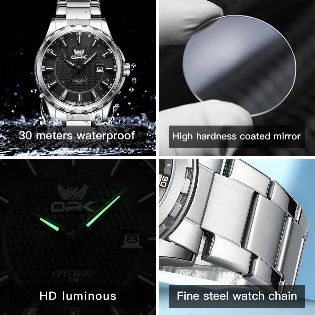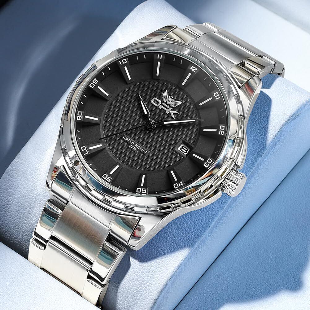 【特価セール】OPK 腕時計 メンズ クォーツ シンプル 人気 男性 おしゃれ ファッション ステンレス 防水 クラシック 日付 夜光 高校生 会社 プレゼントBlack