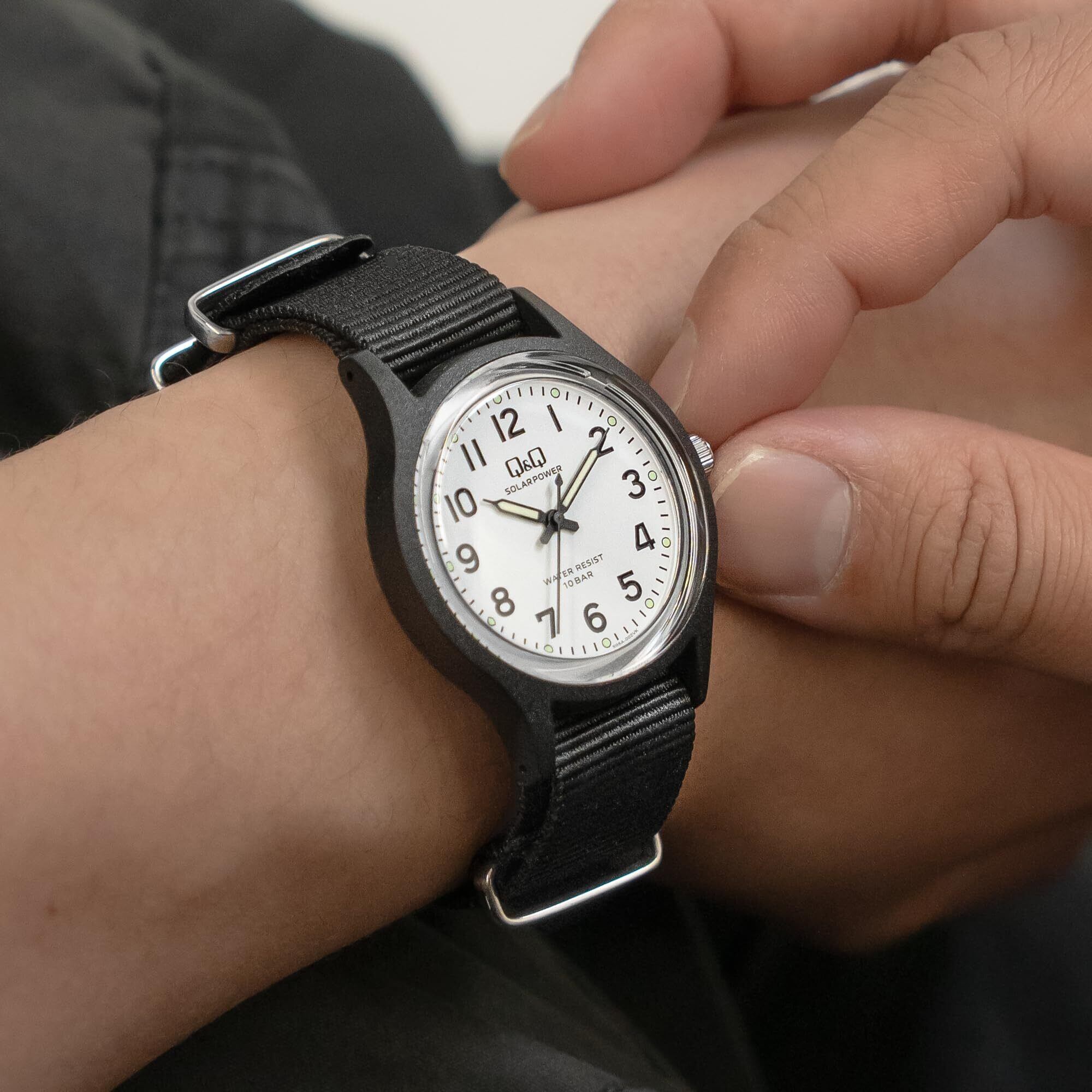 【2022最新】[シチズン Q&Q] アナログ ソーラー腕時計 10気圧防水 ナイロンベルト E05A-002VK メンズ ブラック