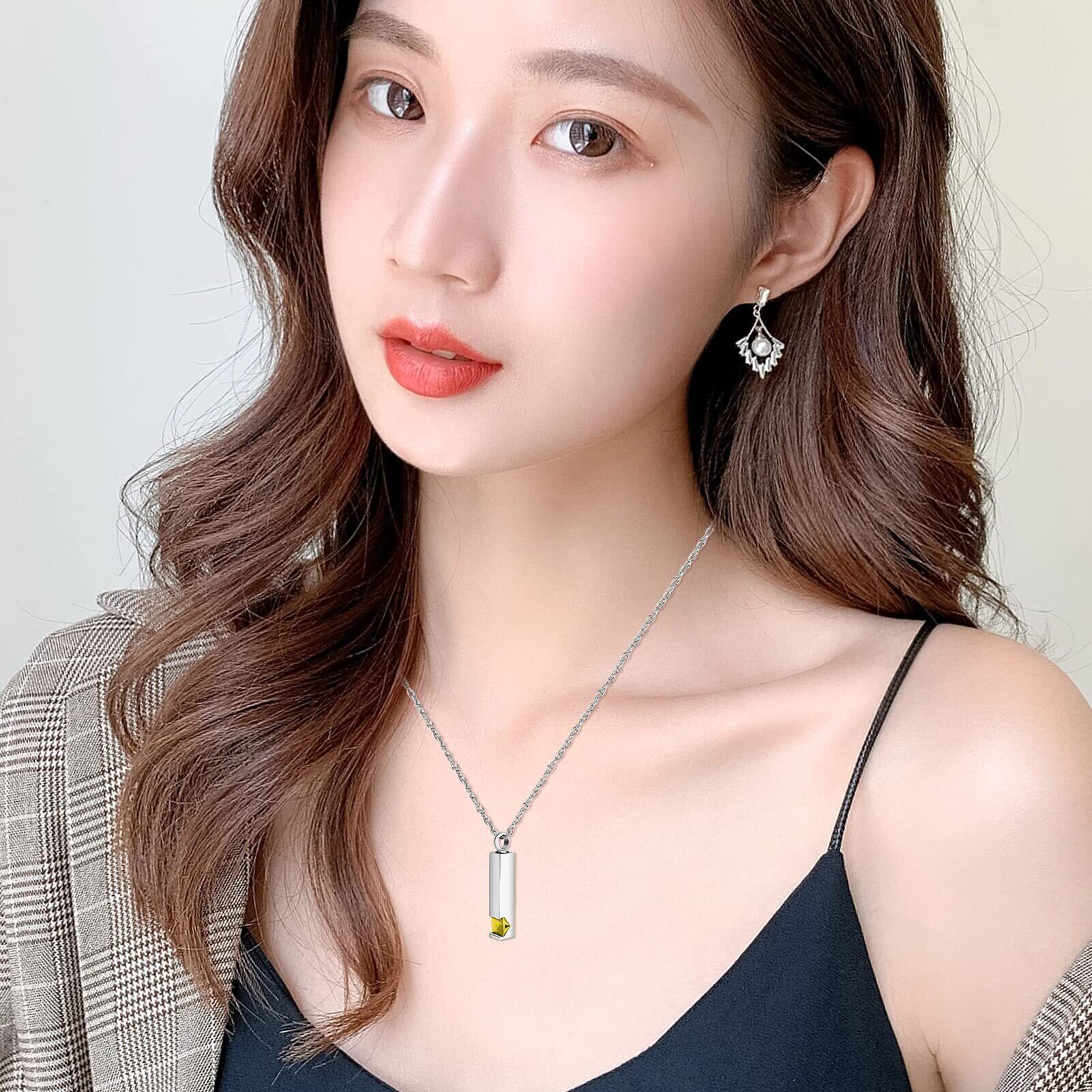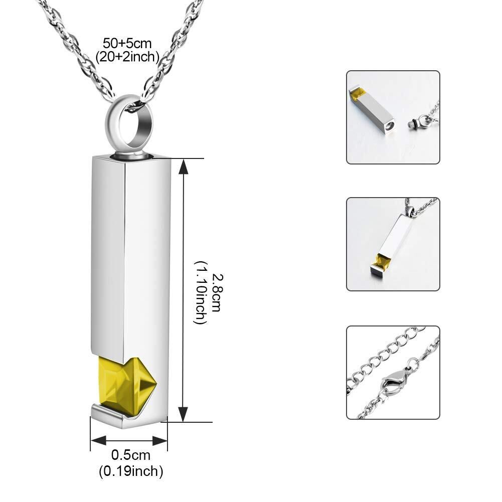 [Dletay] メモリアルペンダント 直方体 誕生石 ラインストーン 手元供養ペンダント 遺骨入れネックレス 取り外し可能 メンズ レディース 記念ジュエリー