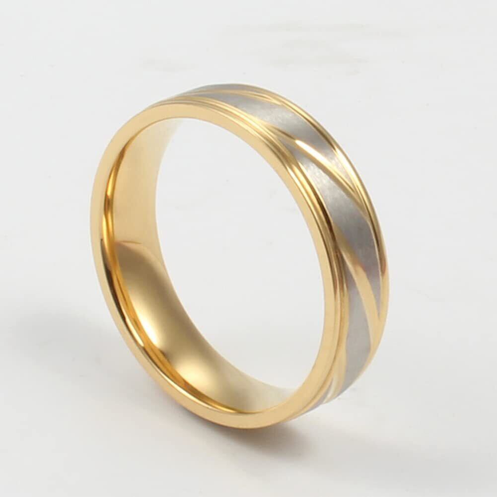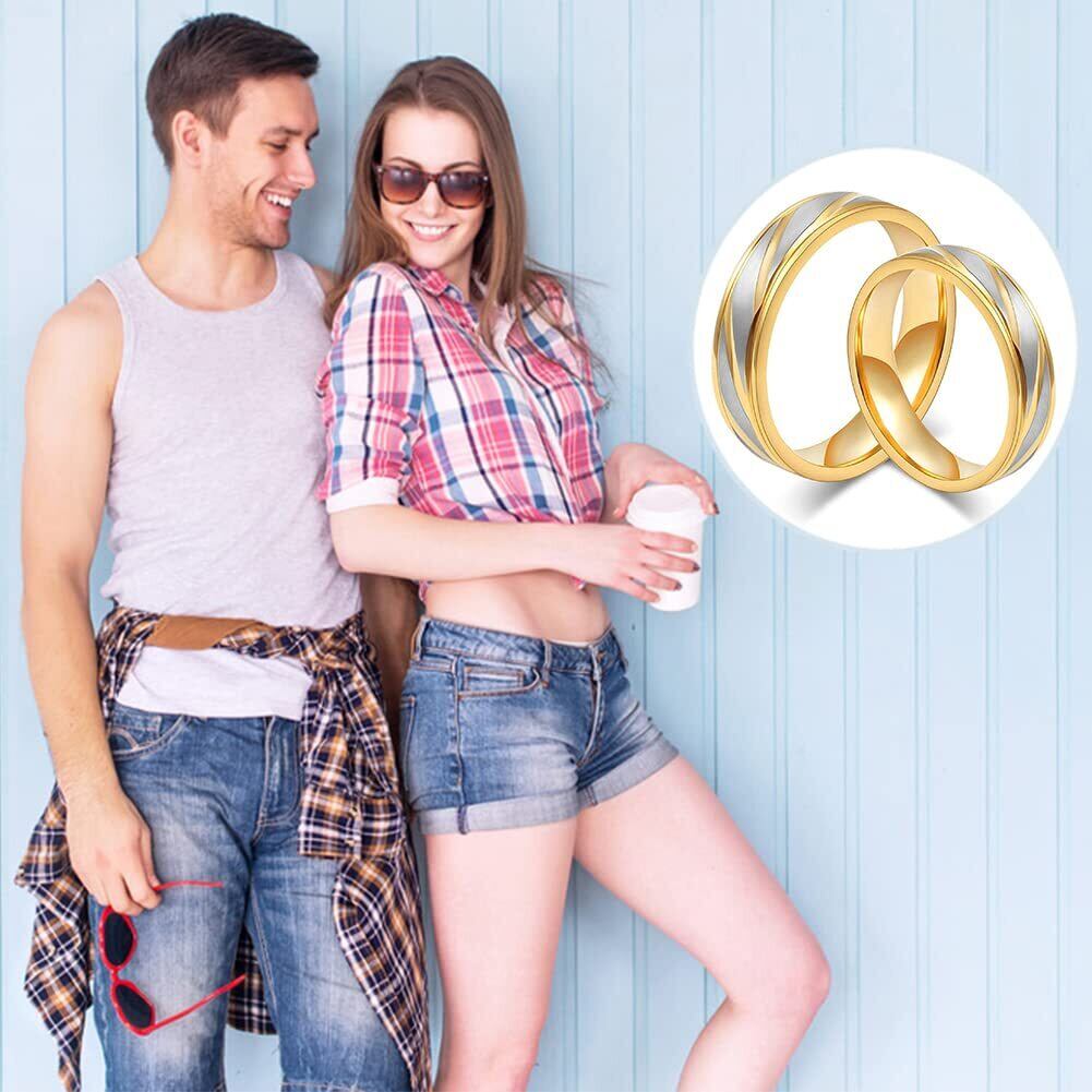 [Rockyu] 人気 ブランド ペアリング チタン指輪 シンプル メンズ ゴールド リング レディース リング エンゲージリング 結婚指輪 金 女性指輪 金幅4mm 男性指輪金幅6mm サイズ自由組み合わせ