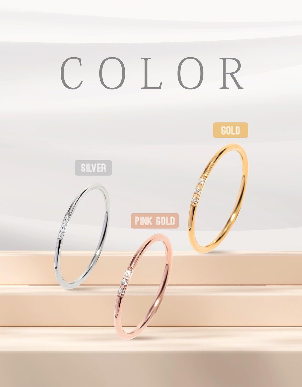 [GREG] リング 指輪 金属アレルギー対応 ニッケルフリー 錆びにくい K18GP キュービックジルコニア ステンレス 1.2mm 華奢 レディース メンズ 4号~21号 czダイヤ 3粒タイプ
