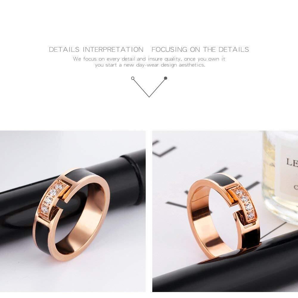 Rockyu ジュエリー ブランド リング レディース 人気 ピンクゴールド 18K 華奢 指輪 ベルト ステンレス 環状 ジルコニア キラキラ (8)