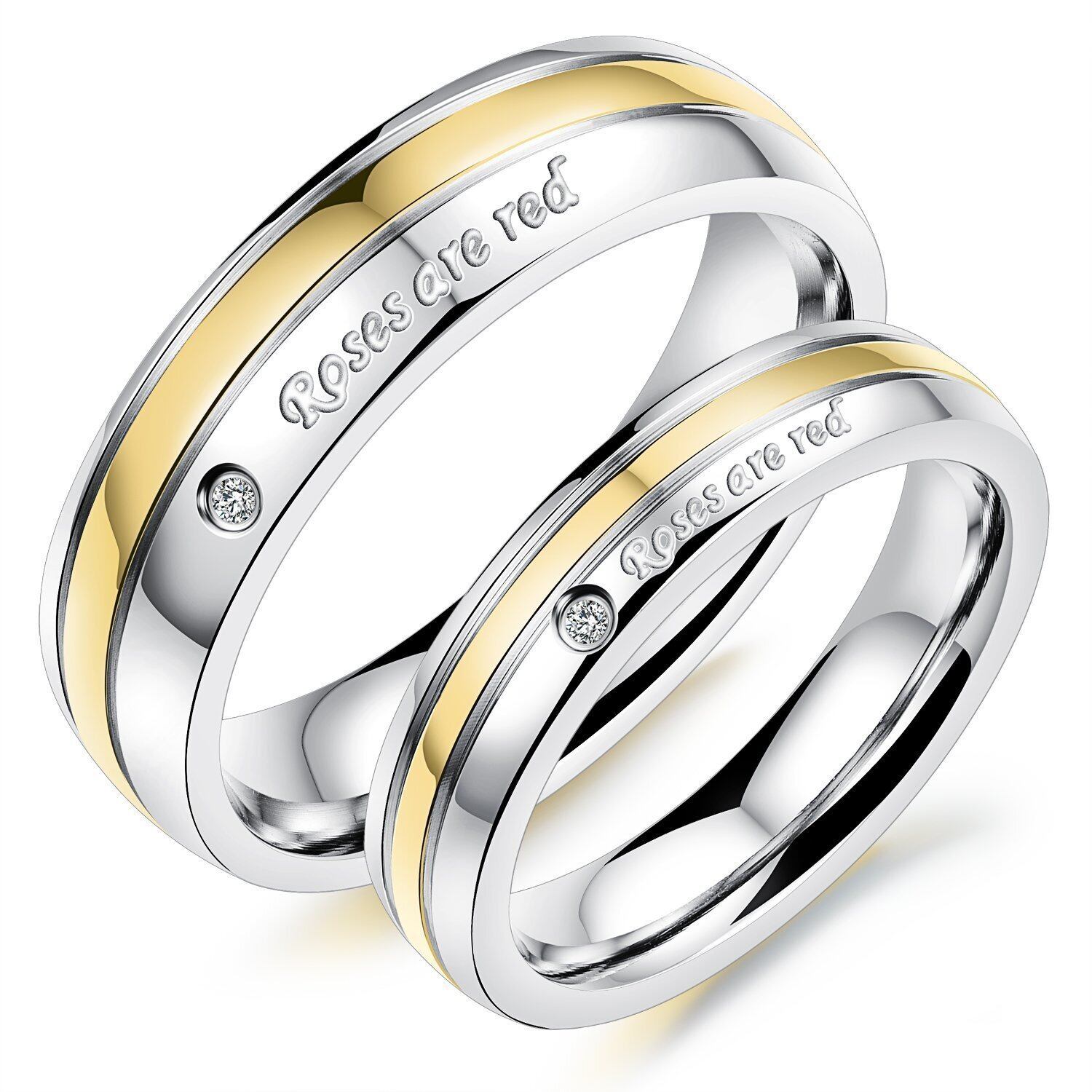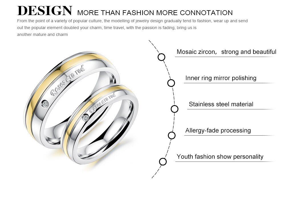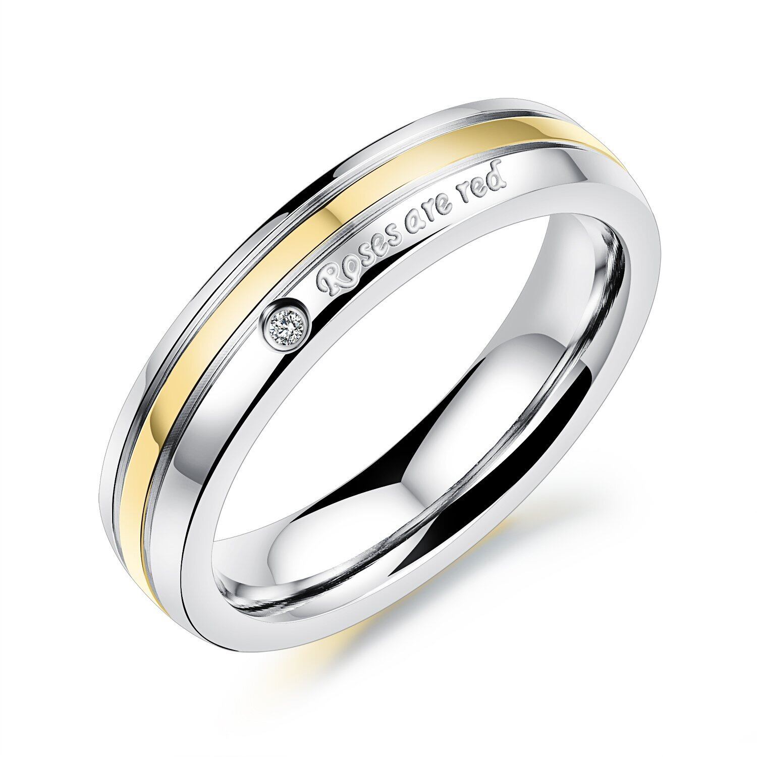 【Rockyu 指輪】 チタンペアリング ゴールド シルバー 幅4mm レディース指輪 12号(指周り:52mmに合う) 刻印指輪 ジルコニア (CZ) 1個販売 女性指輪幅4mm 男性指輪幅6mm サイズ自由組み合わせ 素材: チタンペアリング 重量:5g