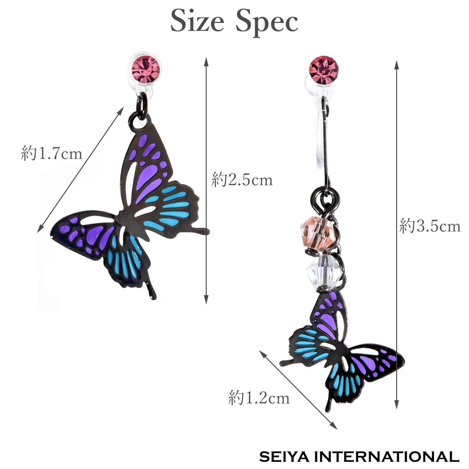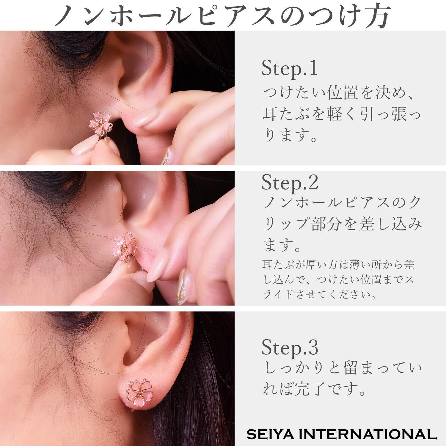 [SEIYA INTERNATIONAL] イヤリング レディース ピアス風 ノンホールピアス フェイクピアス イヤーカフ 揺れる 桜 花 蝶 ノンホール 樹脂 クリップタイプ 両耳セット