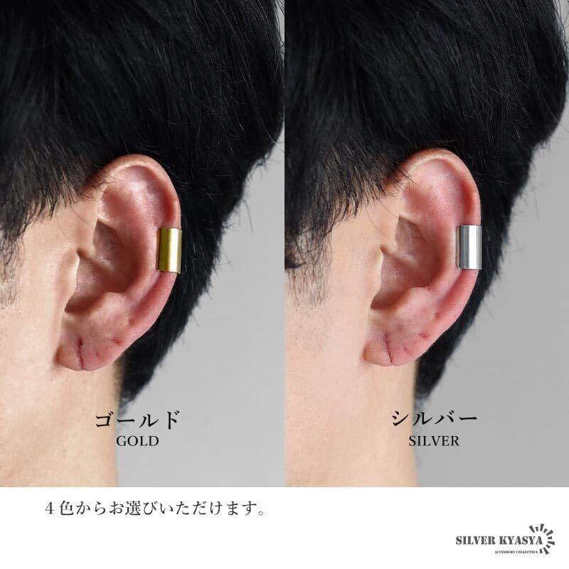[silver KYASYA]ステンレス シンプルイヤーカフ 耳の穴不要 ワイドイヤーカフ 幅広 メタル 4色 両耳2点 男女兼用 金アレ対応(シルバー)