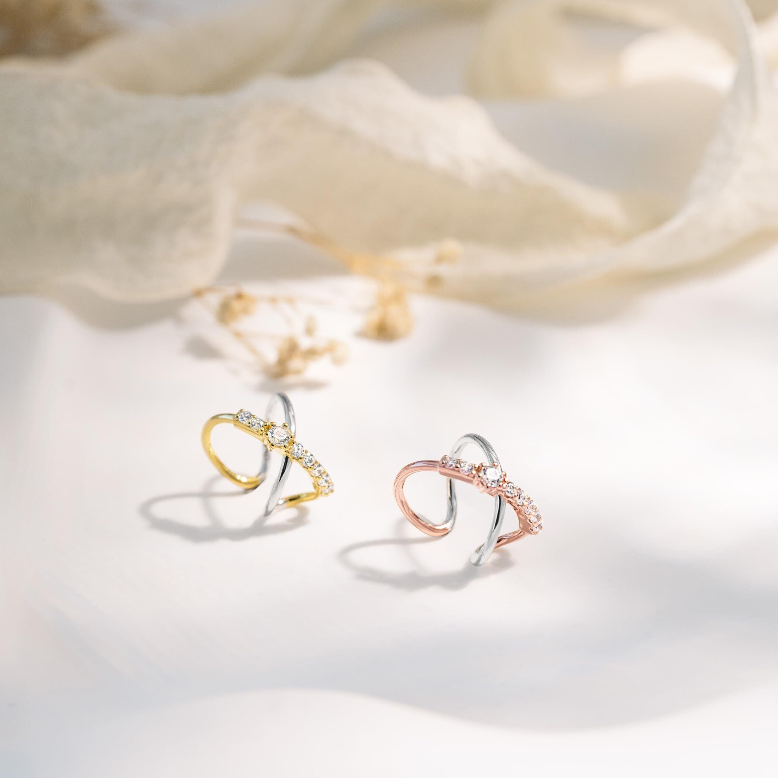 柔らかな曲線:クロス状のデザインにキラキラと輝く上質なジルコンを合わせて耳に華やかに飾ります。華やかなゴールドと優雅的なシルバーの組み合わせが、洗練された印象を与えます