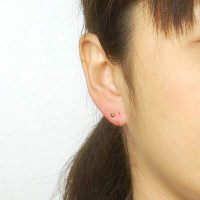 セカンドピアス 18金 軸太 K18PGピンクゴールド丸玉ピアス 3mm 芯幅太長めタイプ 太さ0.8mm長さ12mm 1ペア両耳販売 18金 K18 幅太 福耳 yokomountain (ダブルロックキャッチ大)