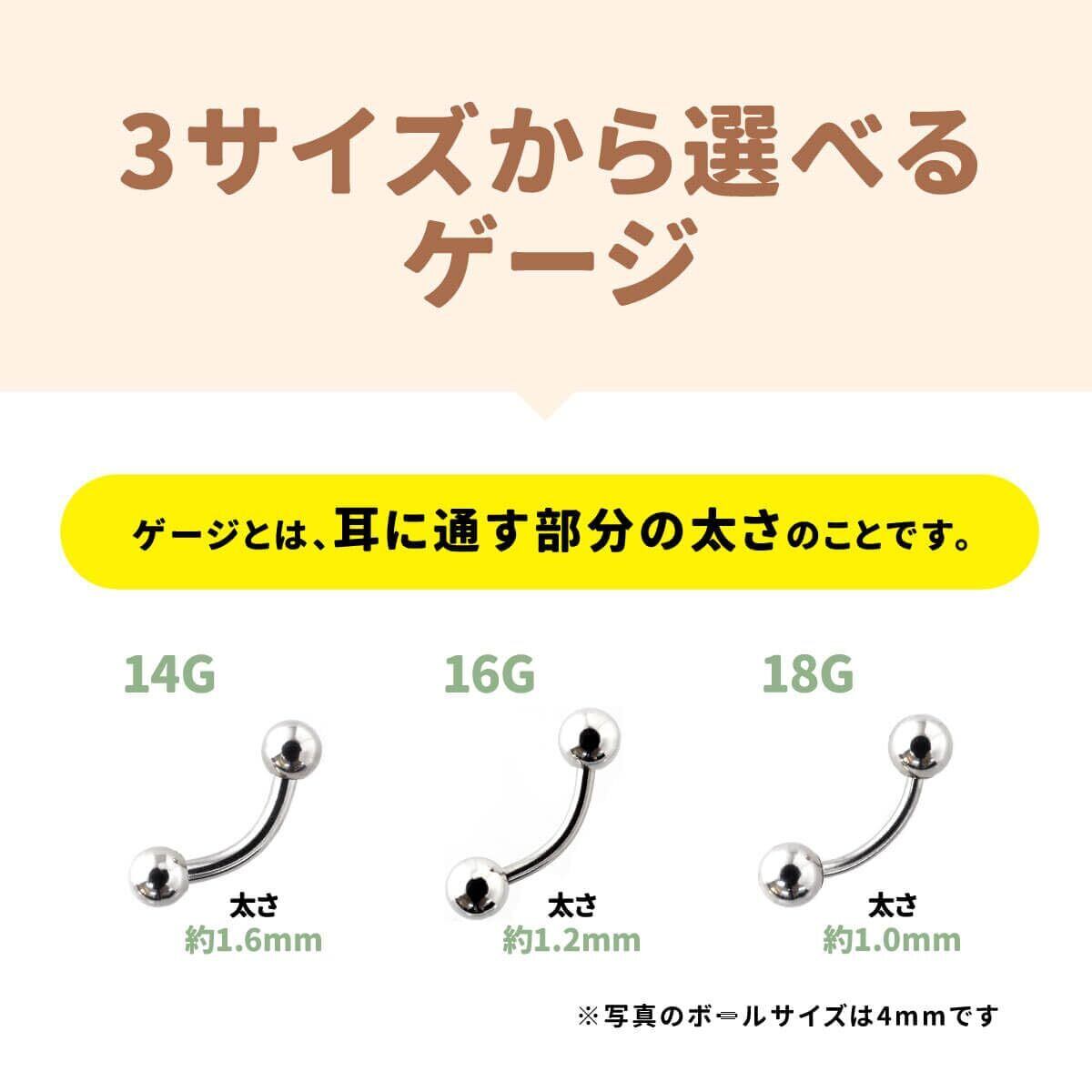 太さ14G,16G シャフト8mm〜12mm ボール3mm〜4mmのバナナバーベルです